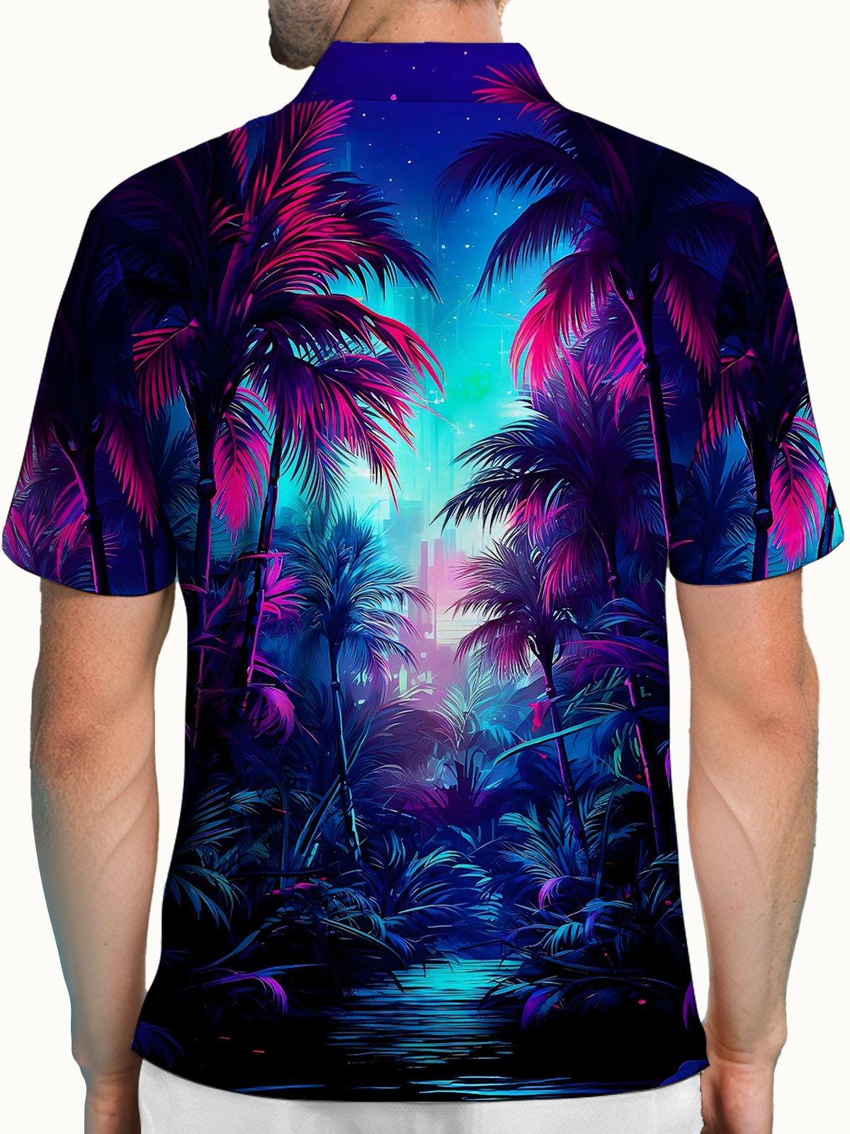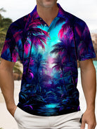 Alohadaddy® Hawaiian Beach Scene Coconut Tree Short-Sleeve Polo Shirt