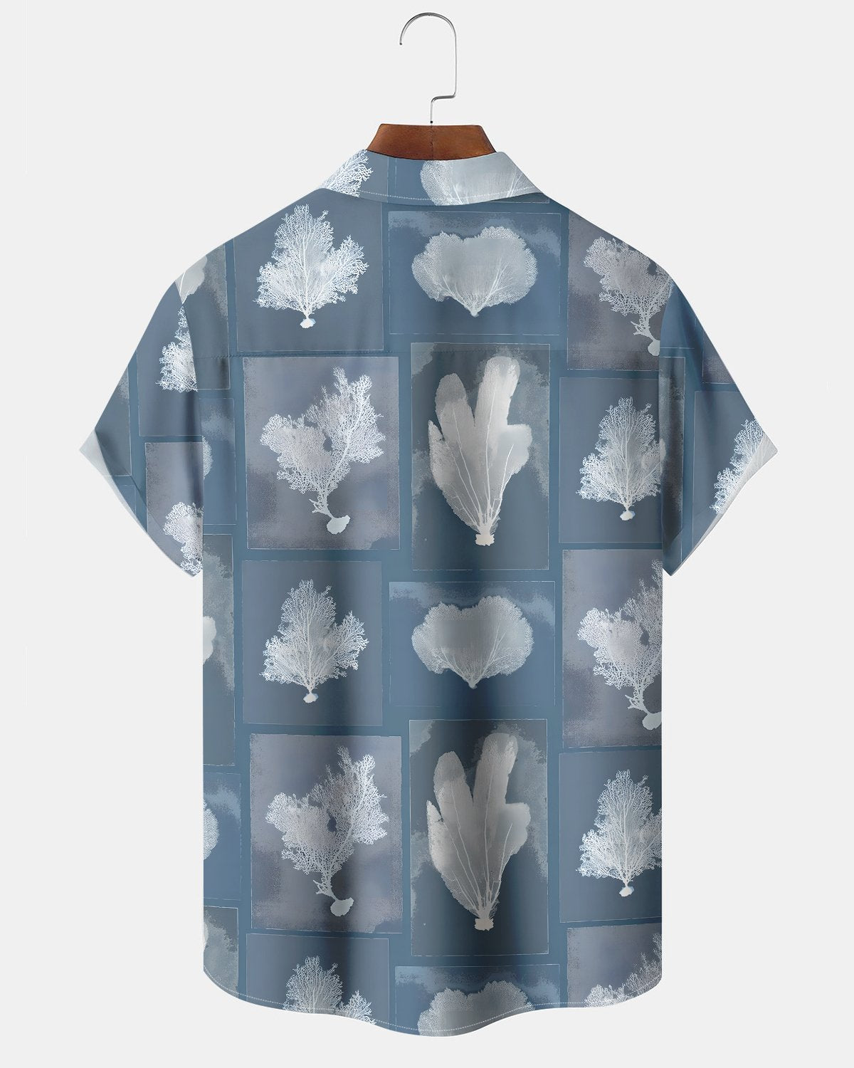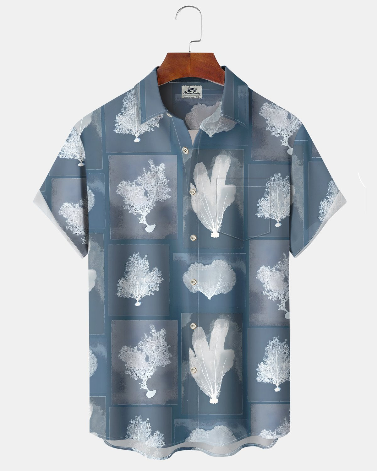 Alohadaddy® Hawaiian Coral Print Art Button Pocket Cardigan Men's Short Sleeve Shirt Big & Tall