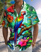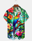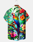 Alohadaddy® Hawaiian Parrot Print Pocket Elastic Button Men's Long Sleeve Shirt Big & Tall
