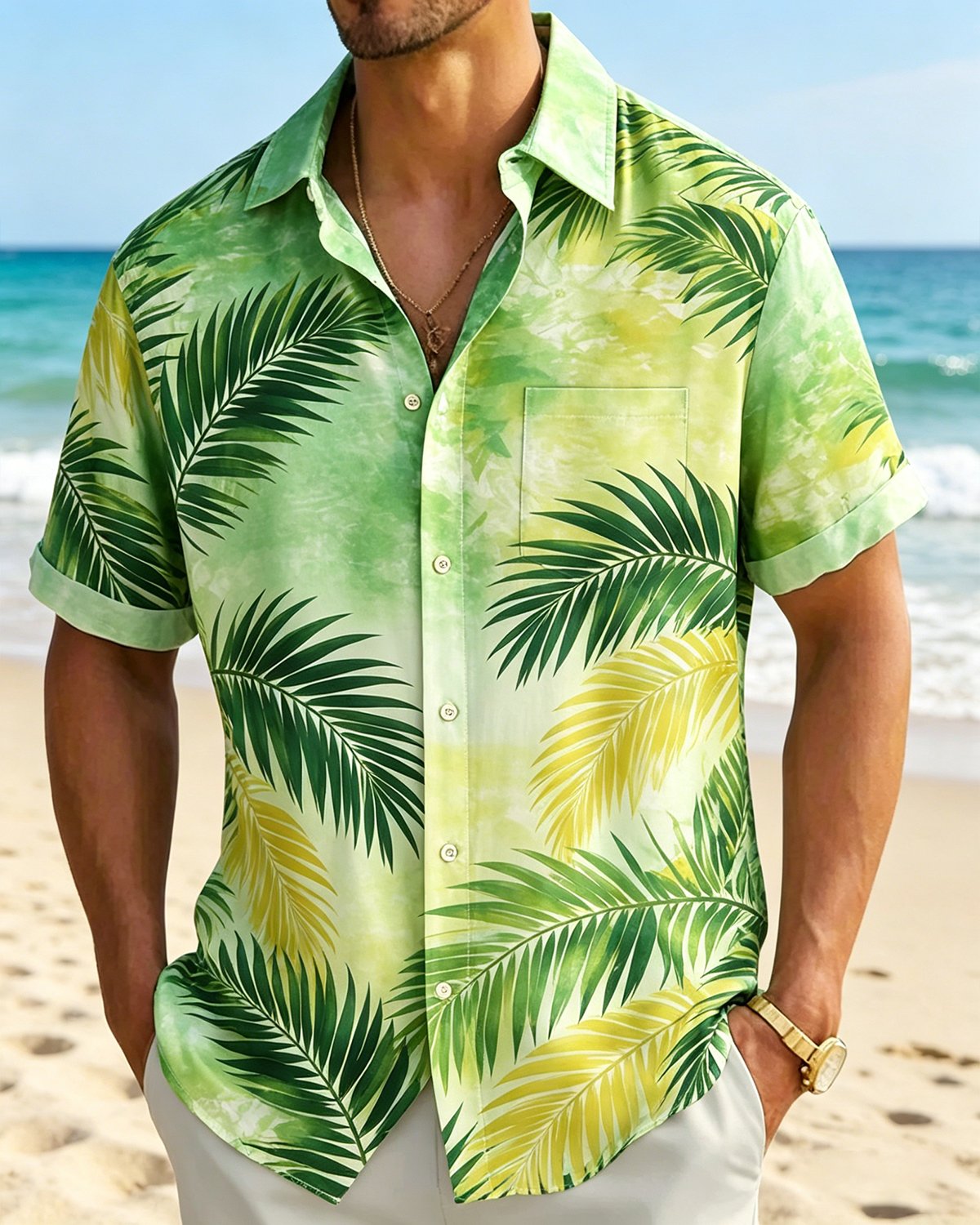 Alohadaddy® Hawaiian Tropical Floral Leaf Gradient Short-Sleeve Shirt