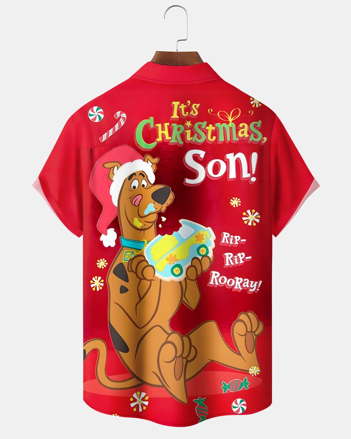 Alohadaddy® Holiday Christmas Cartoon Puppy Short-Sleeve Shirt