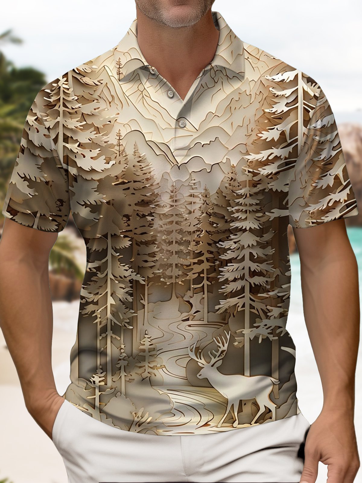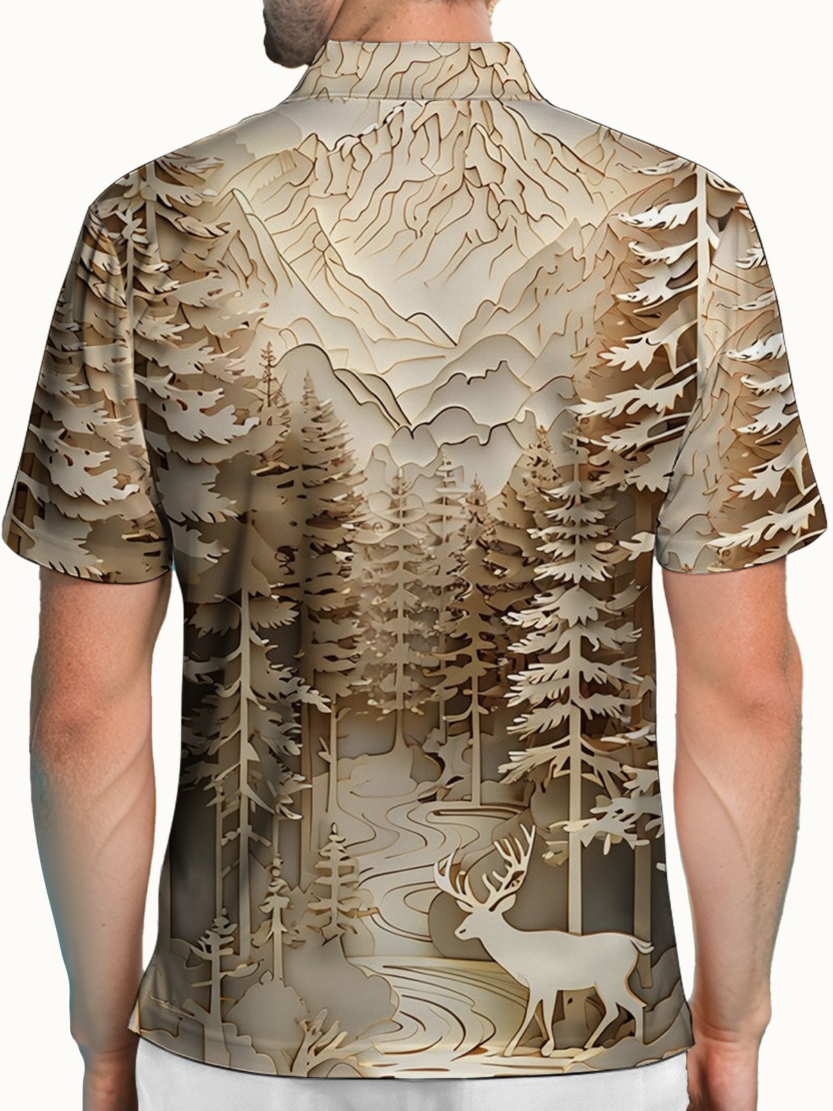 Alohadaddy® Retro 3D Forest Reindeer Geometric Short-Sleeve Polo Shirt
