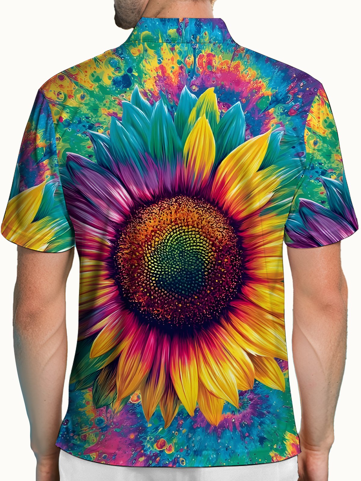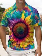 Alohadaddy® Retro Abstract Tie-Dye Sunflower Floral Polo Shirt