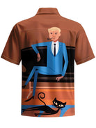Alohadaddy® Retro Atom Geometric Cartoon Print Art Elastic Pocket Button Men's Short Sleeve Shirt Big & Tall