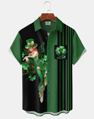 Alohadaddy® St. Patrick's Day Leprechaun Four-Leaf Clover Bowling Shirt