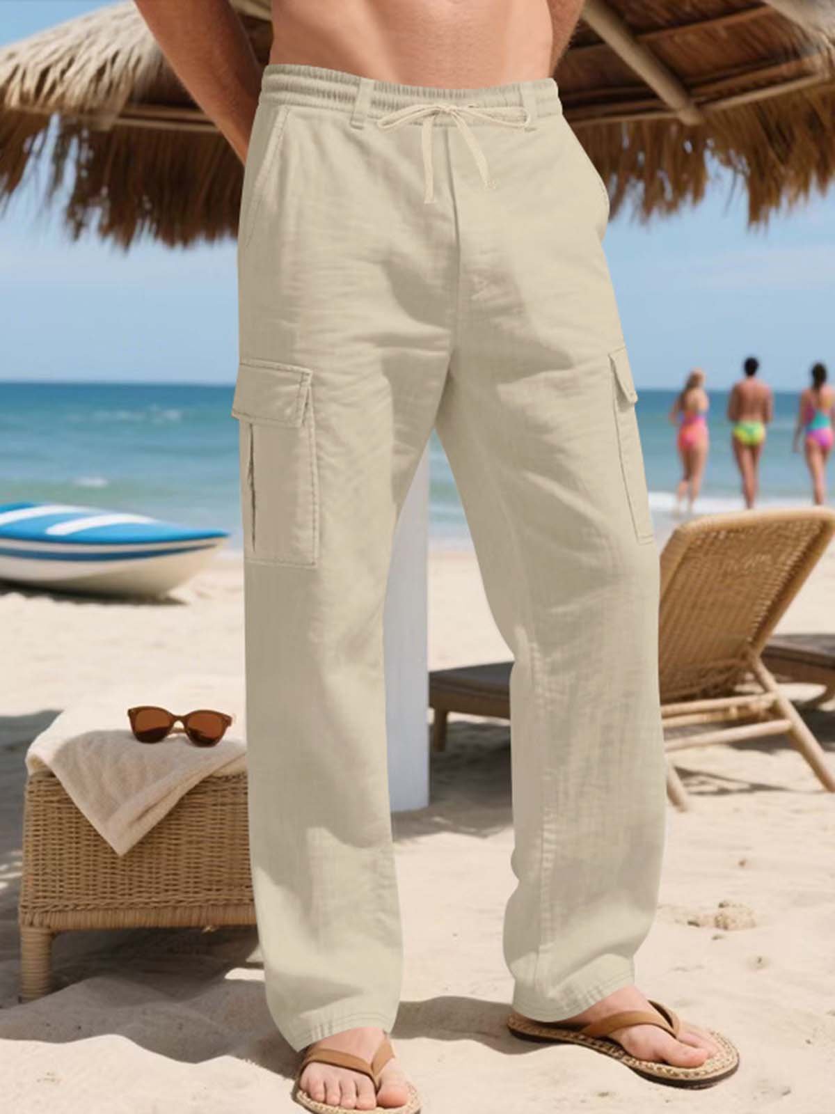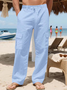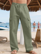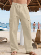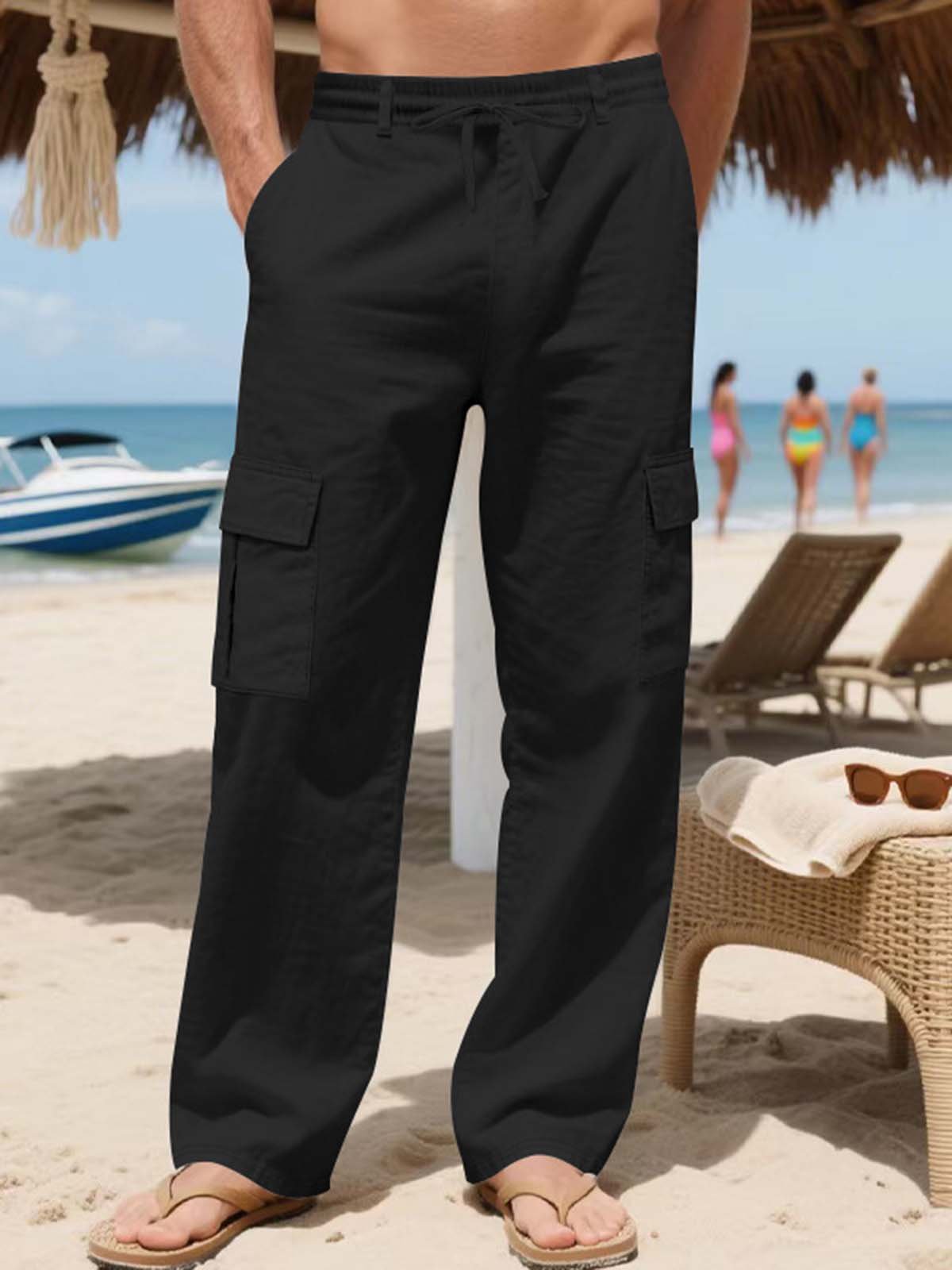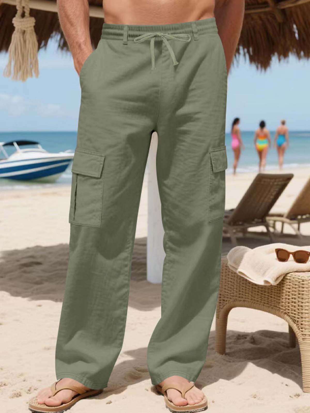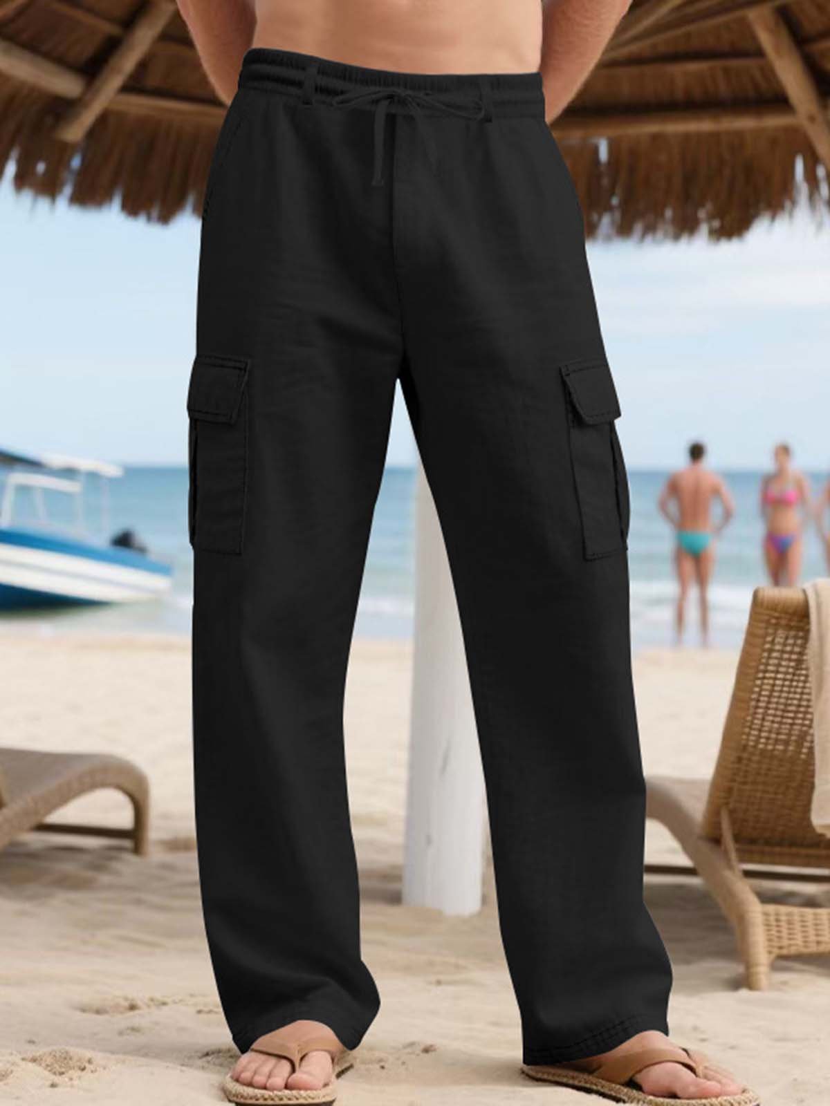Alohadaddy® Autumn and Winter Linen Men's Pants Straight Breathable Daily Drawstring Multi-Pocket Straight Pants