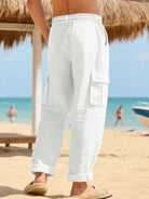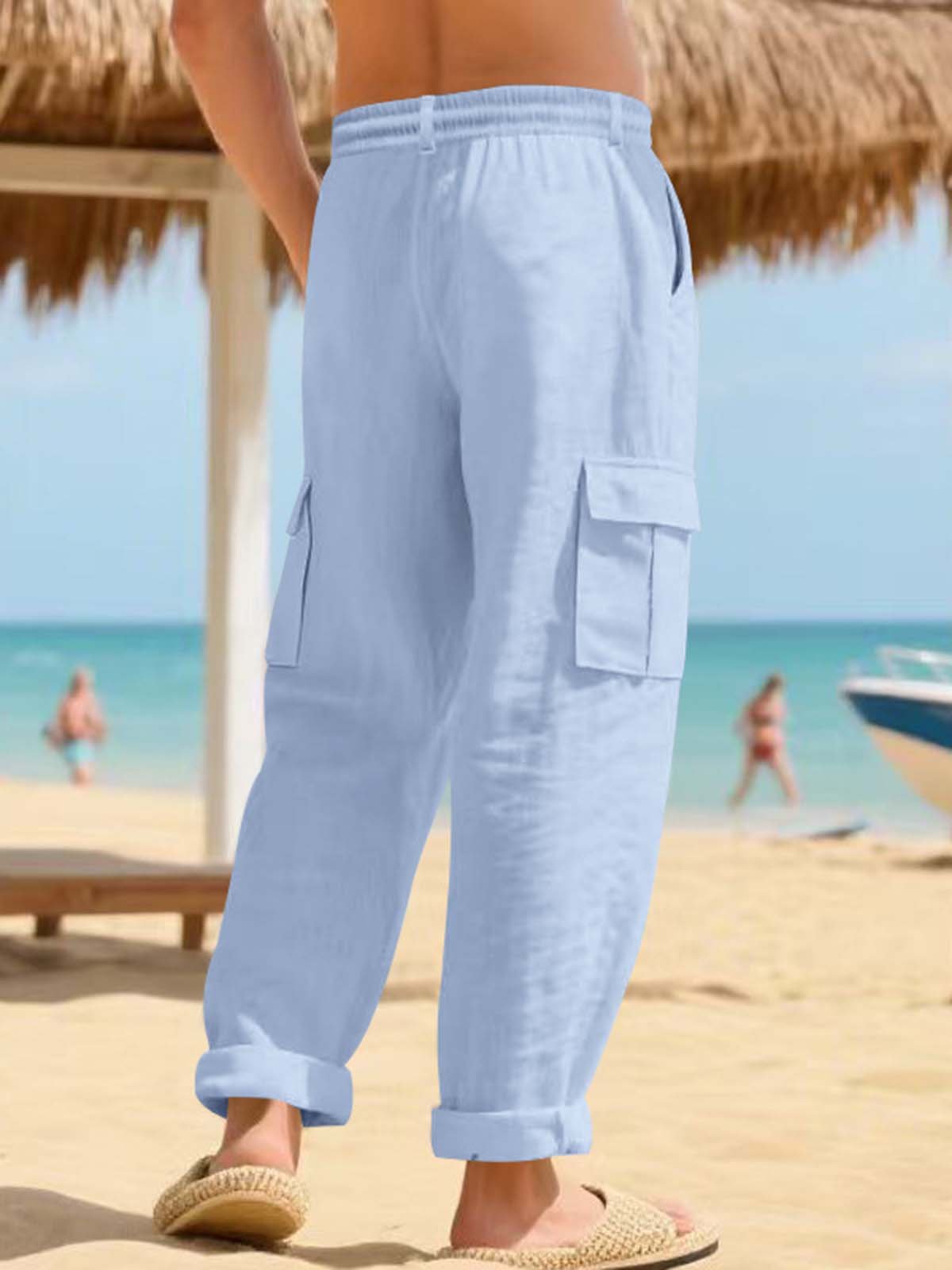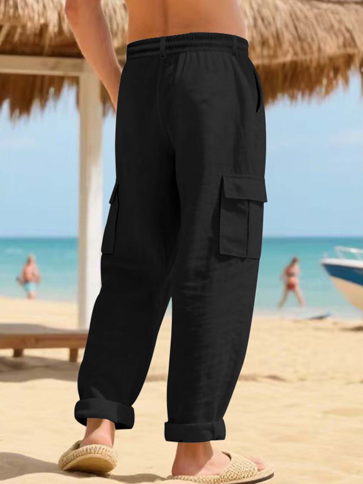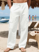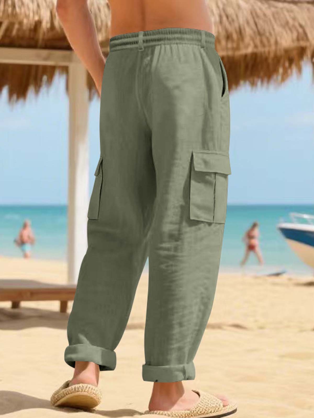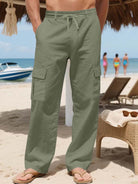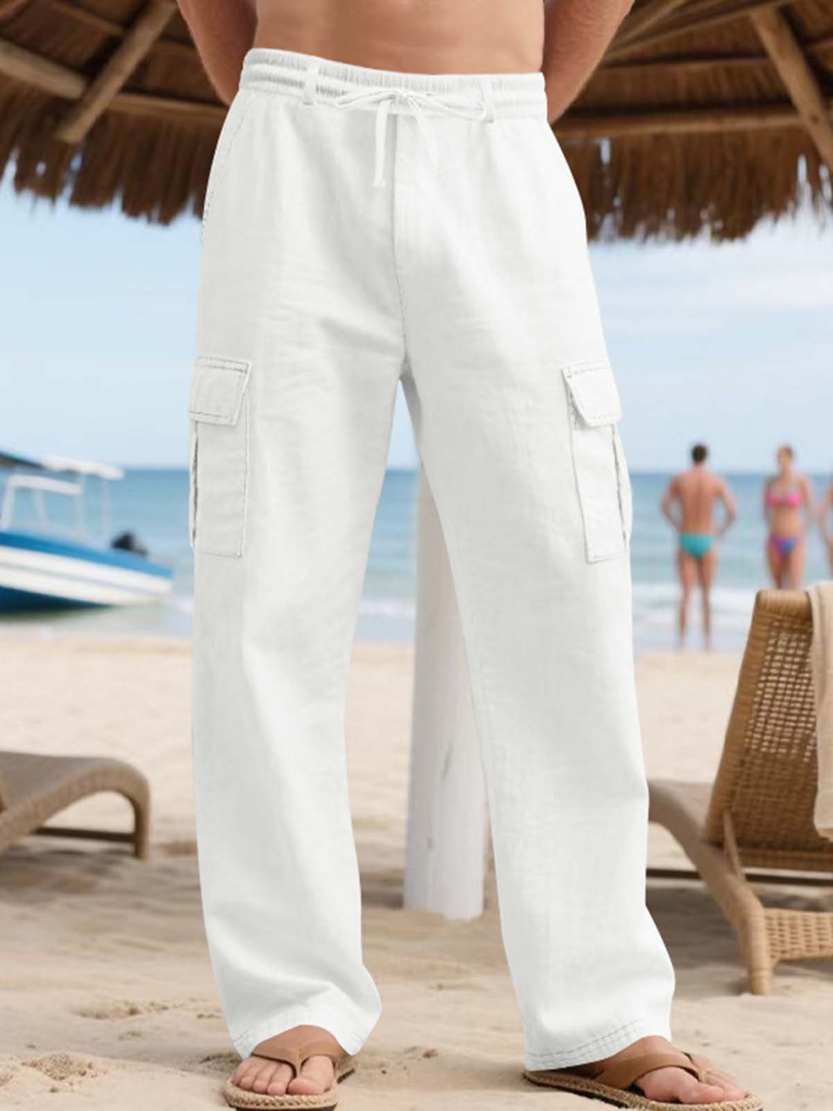 Alohadaddy® Autumn and Winter Linen Men's Pants Straight Breathable Daily Drawstring Multi-Pocket Straight Pants