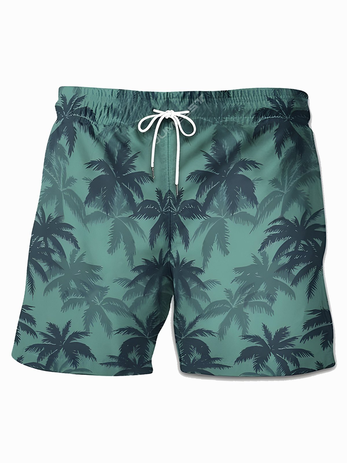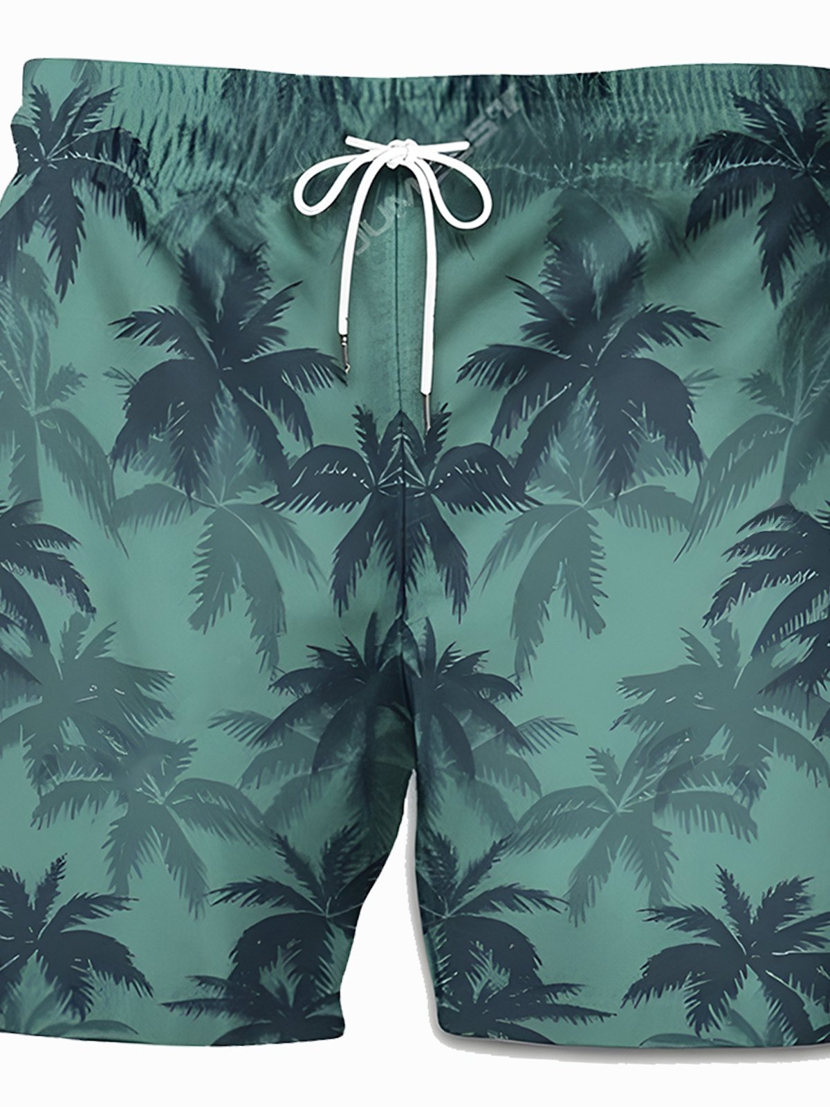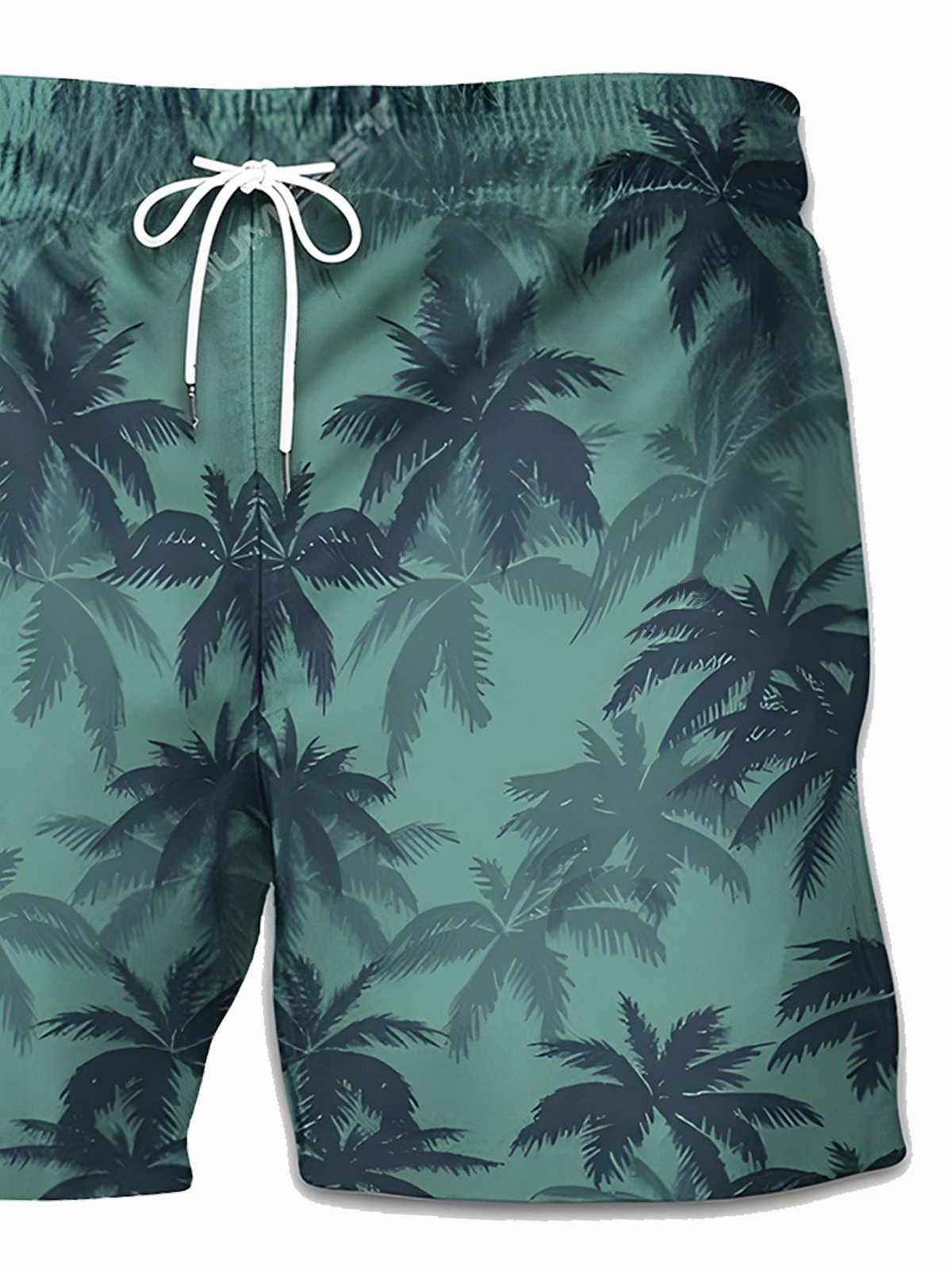 Pantalones cortos de playa Alohadaddy Beach Holiday Green para hombre, pantalones cortos casuales elásticos de secado rápido con diseño de árbol de coco