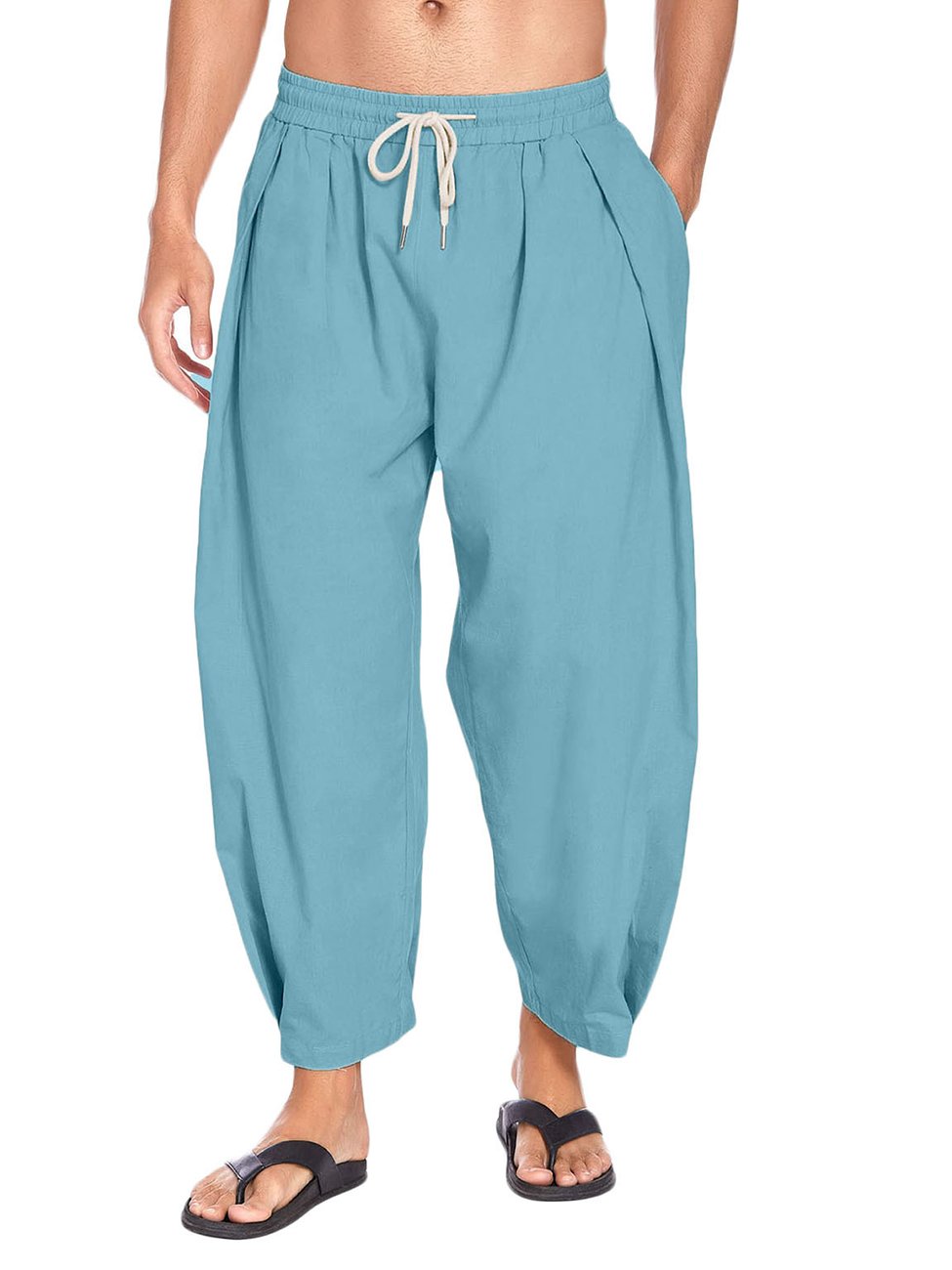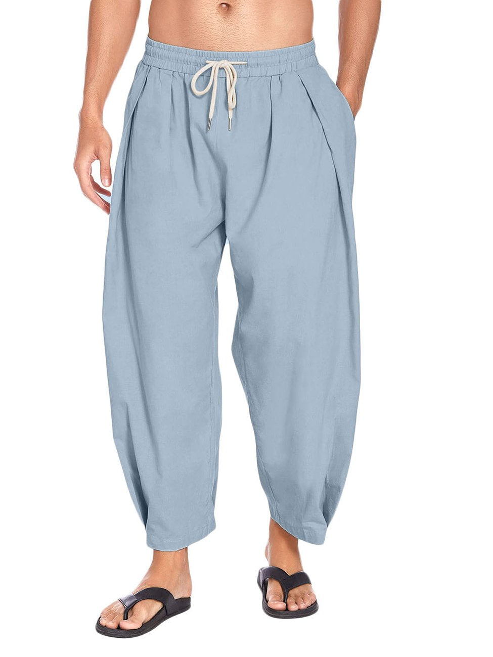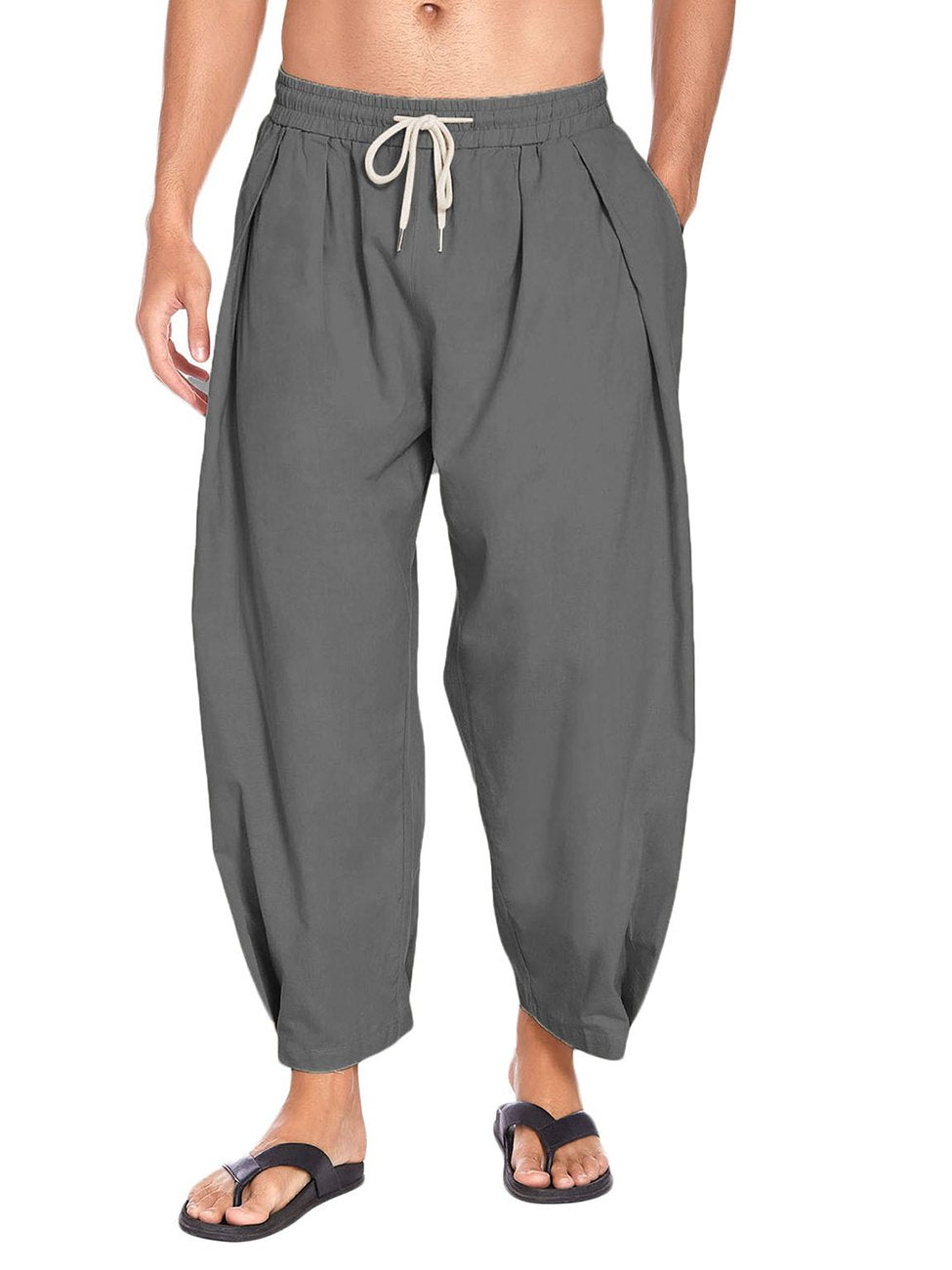 Pantalones capri holgados de lino y algodón con bolsillos y cordón ajustable de Alohadaddy