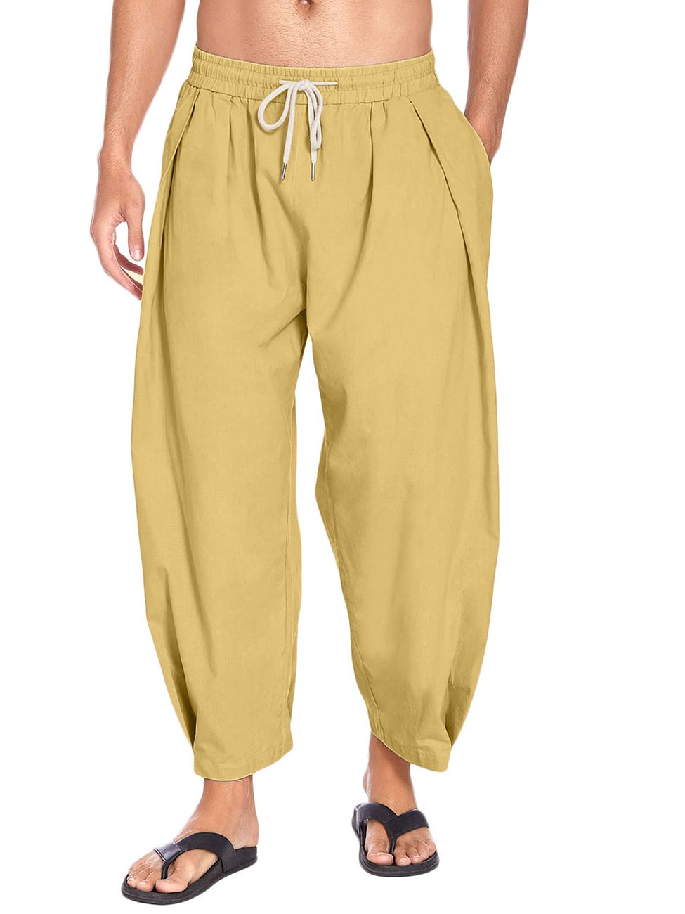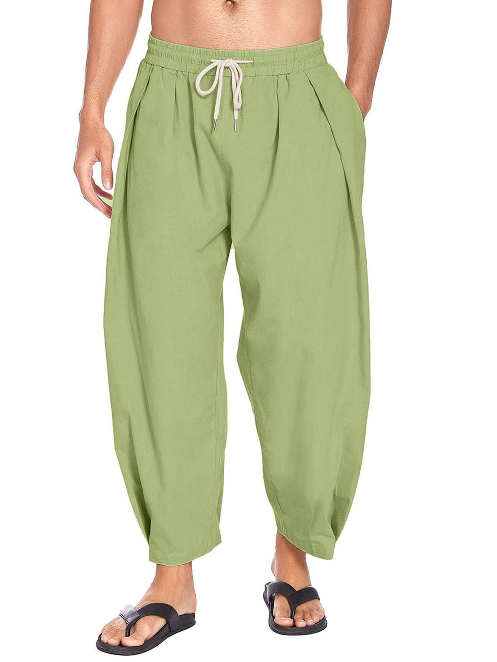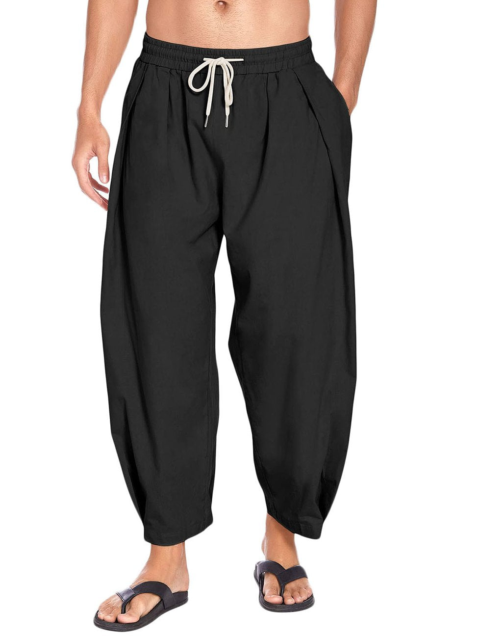 Pantalones capri holgados de lino y algodón con bolsillos y cordón ajustable de Alohadaddy