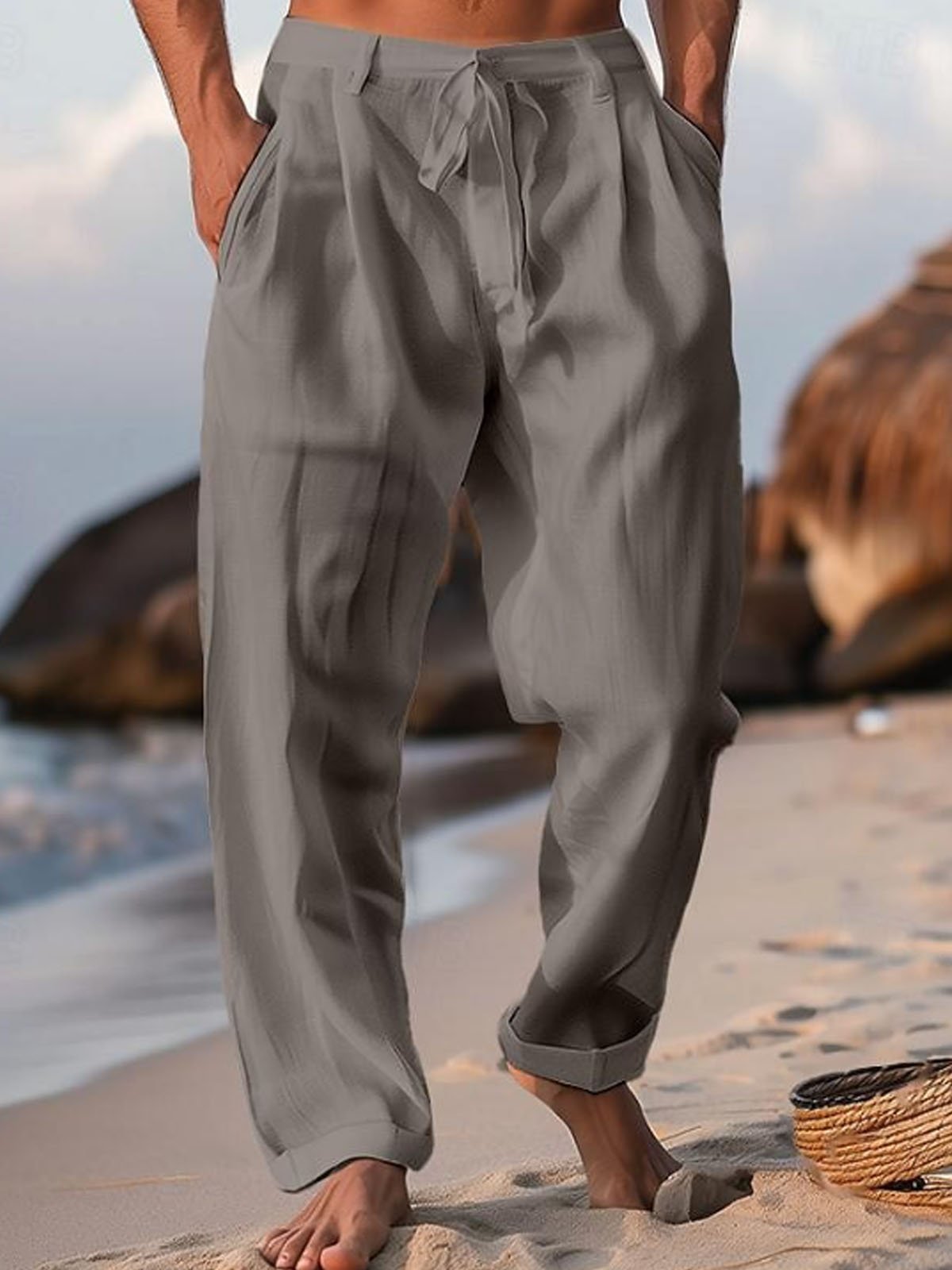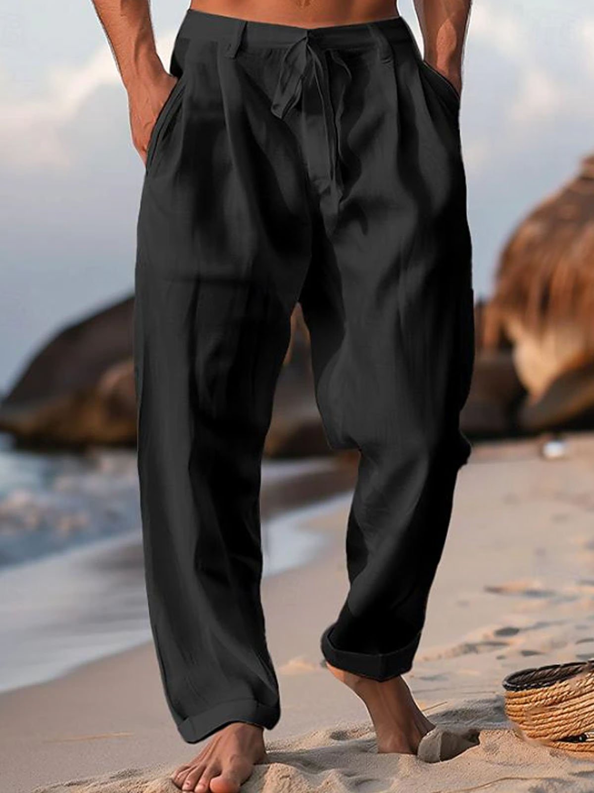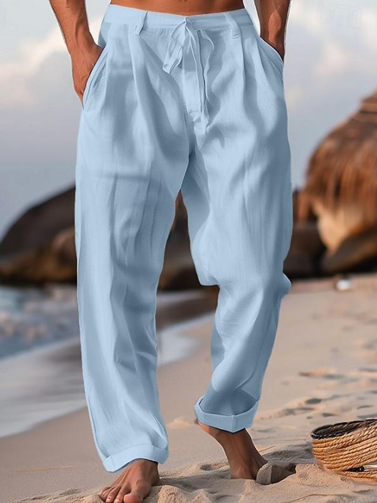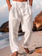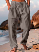 Pantalones casuales básicos con botones, bolsillos y cordón para hombre de Alohadaddy, tallas grandes y altas