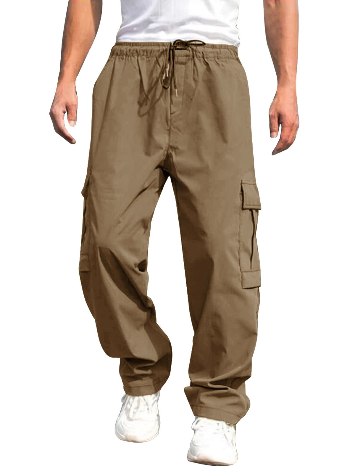 Pantalones cargo casuales retro Alohadaddy para hombre, con cordón, cintura elástica, múltiples bolsillos, elásticos, pantalones casuales de talla grande