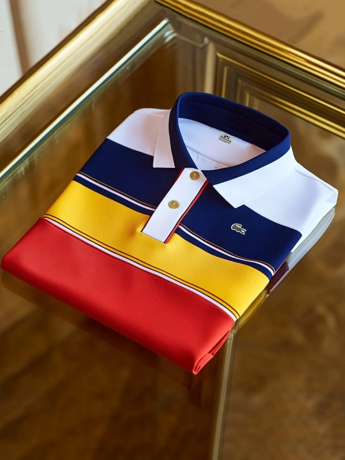 Alohadaddy® Business Contrast Stripe Logo Button Stretch Men's Short Sleeve Polo Shirt Big & Tall