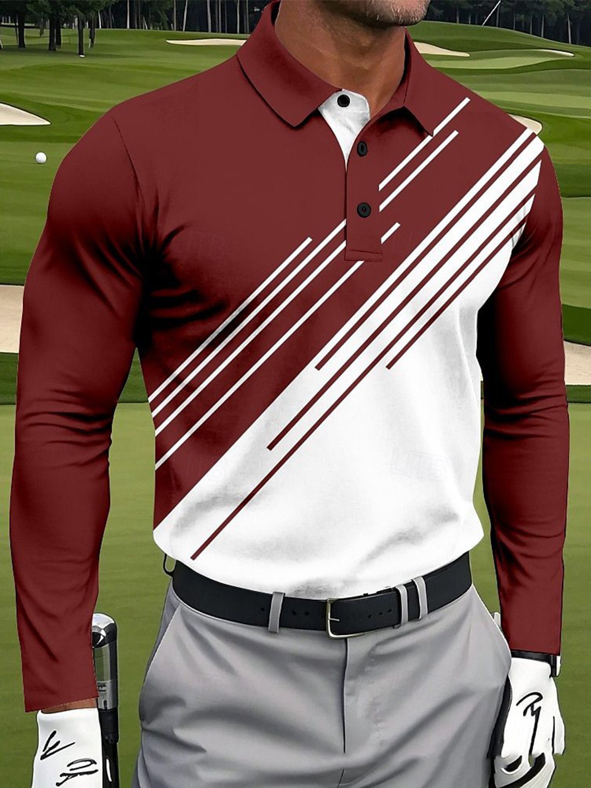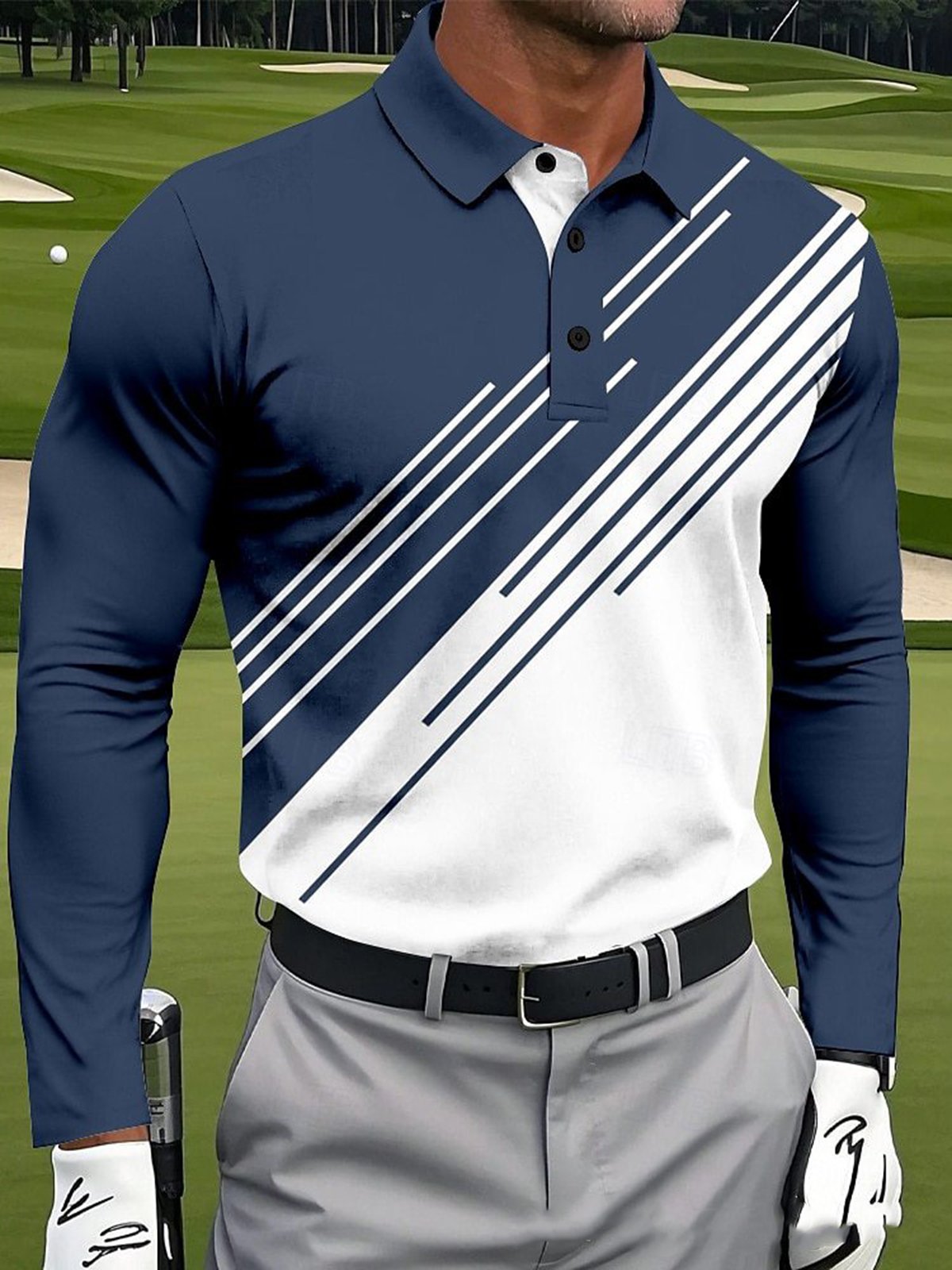 Alohadaddy® Casual Business Golf Long Sleeve Polo Shirt Printed Quick-Drying Breathable Lapel Polo Big & Tall