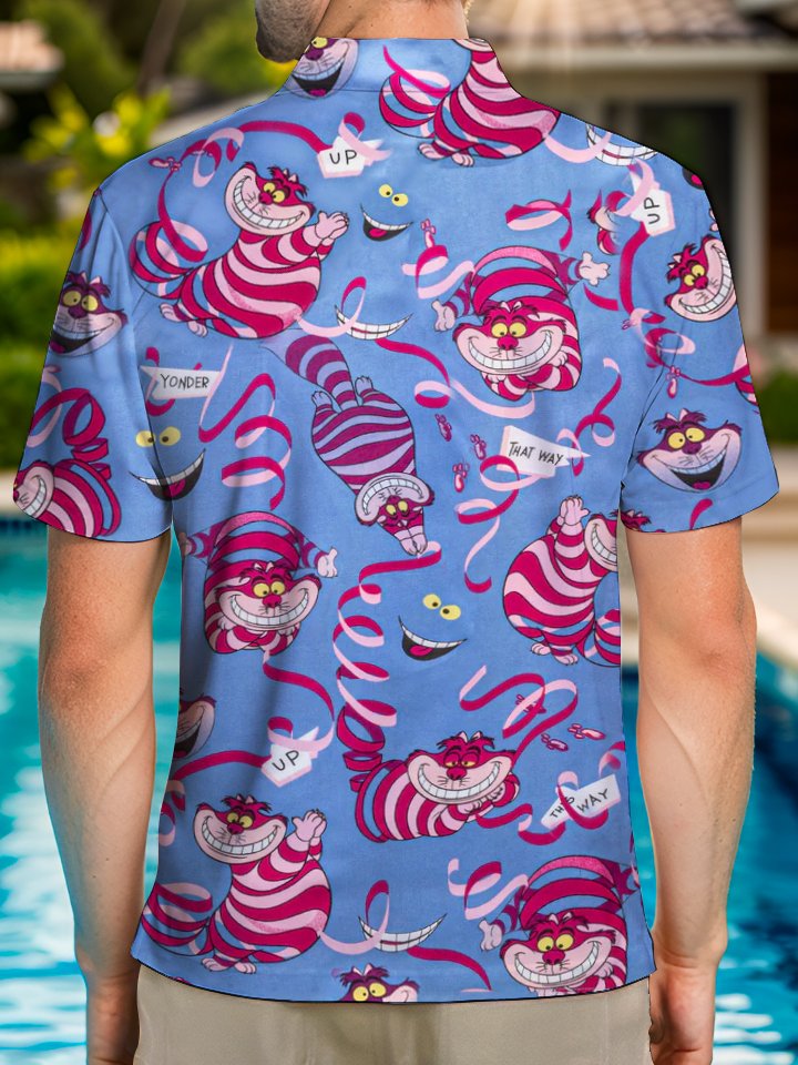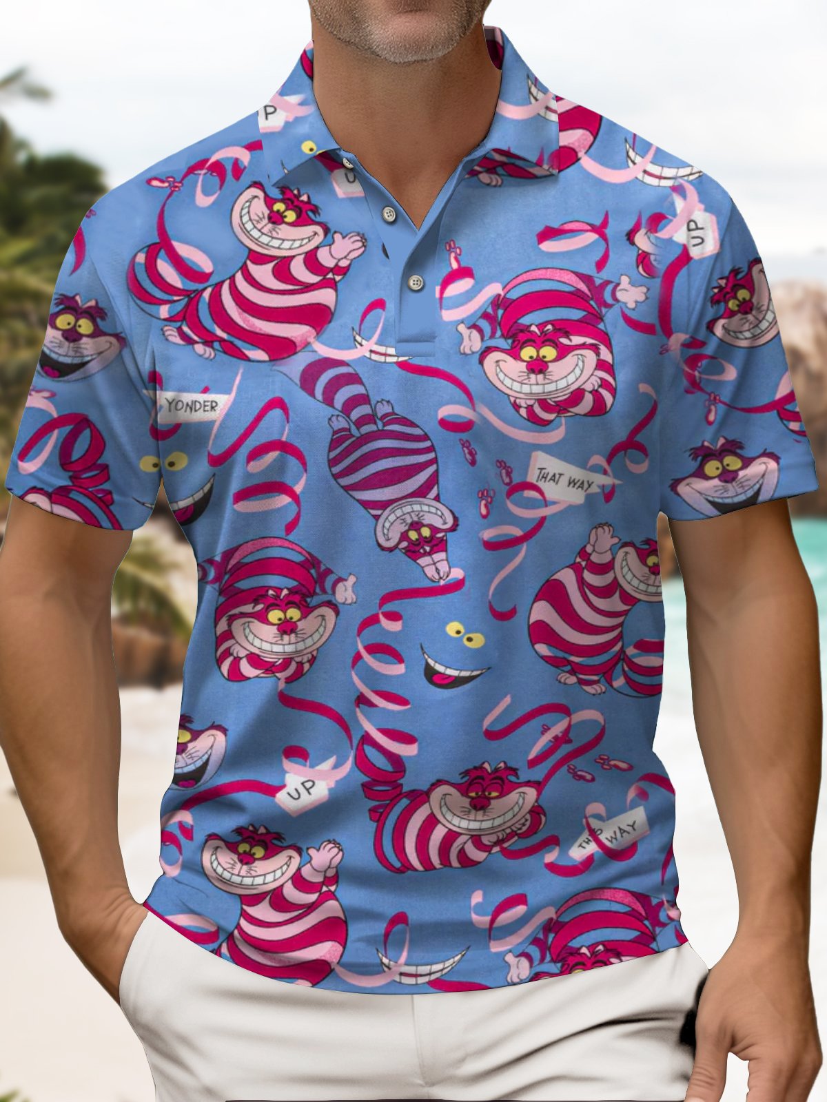 Alohadaddy® Casual Cartoon Fun Print Button Stretch Men's Short Sleeve Polo Shirt Big & Tall