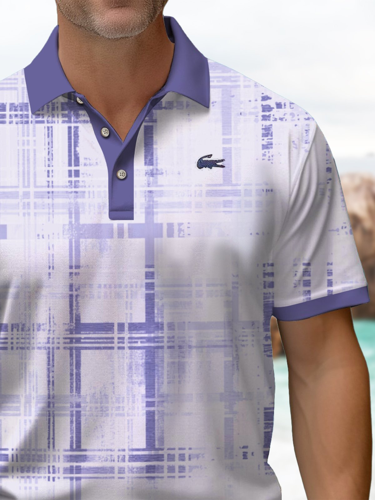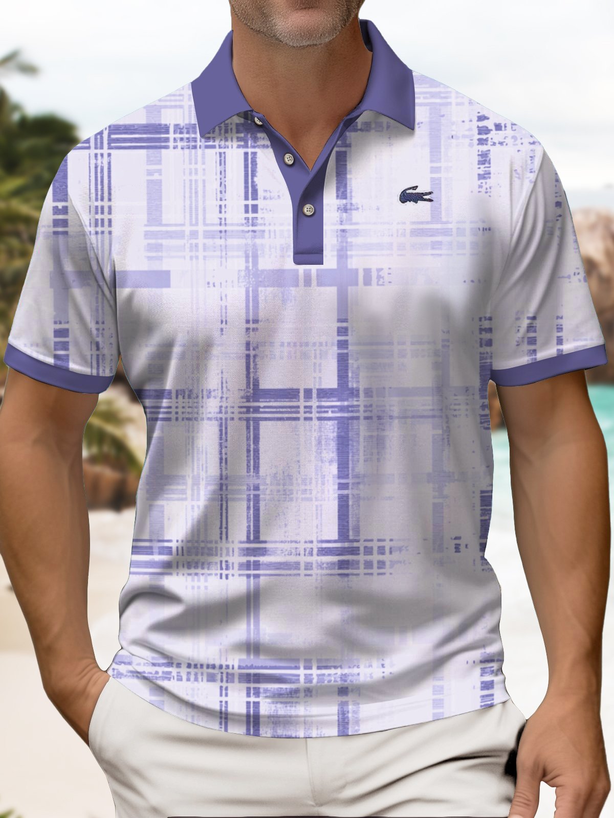 Alohadaddy® Casual Plaid Logo Geometric Print Art Button Stretch Men's Short Sleeve Polo Big & Tall