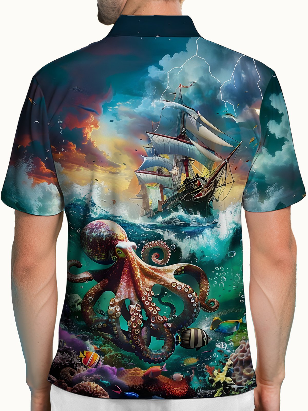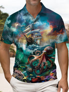 Alohadaddy® Hawaiian Octopus Sailing Ship Short-Sleeve Polo Shirt