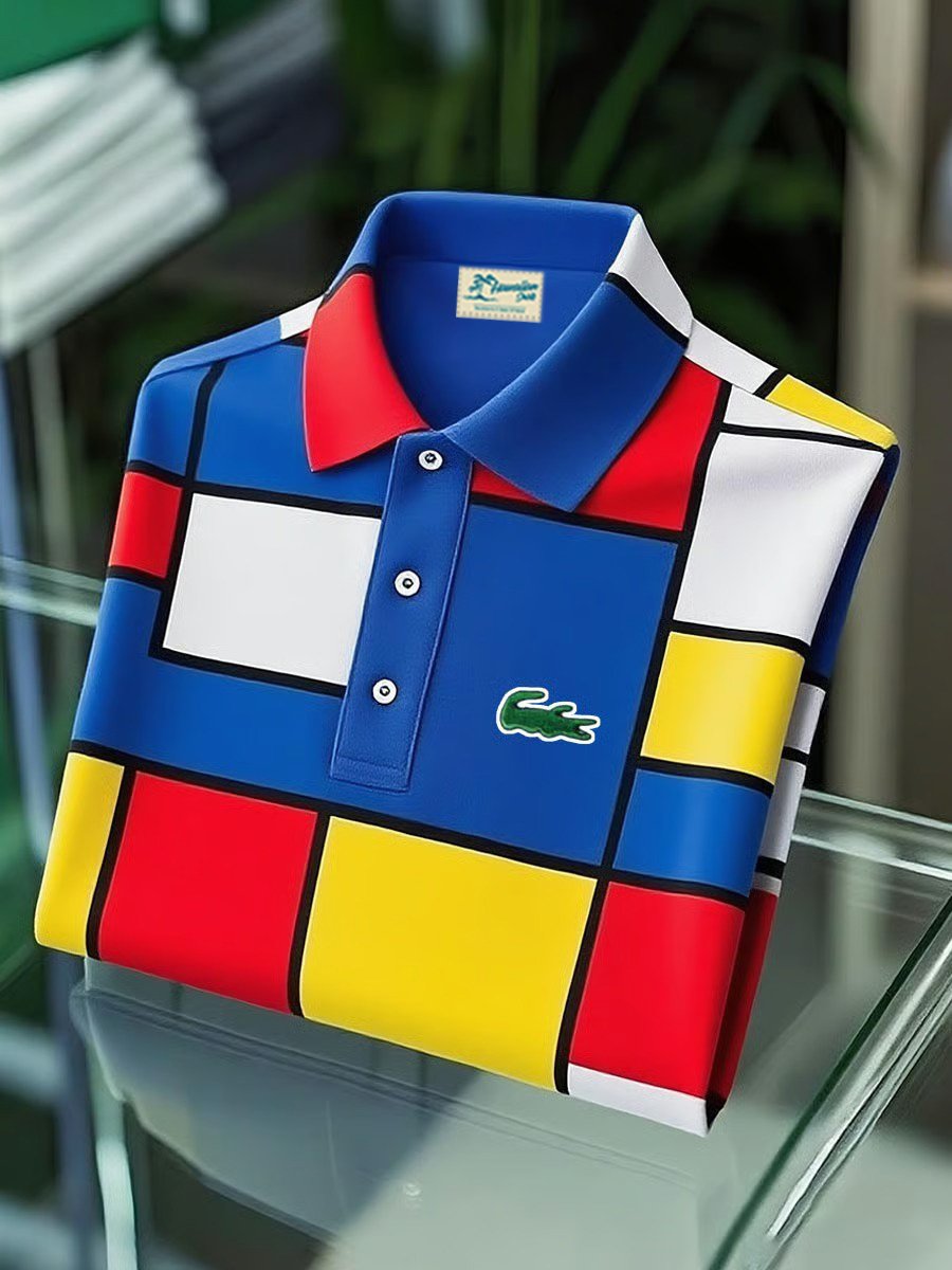 Alohadaddy® Men's Classic Mondrian Logo Business Button-Down Polo Shirt Big & Tall