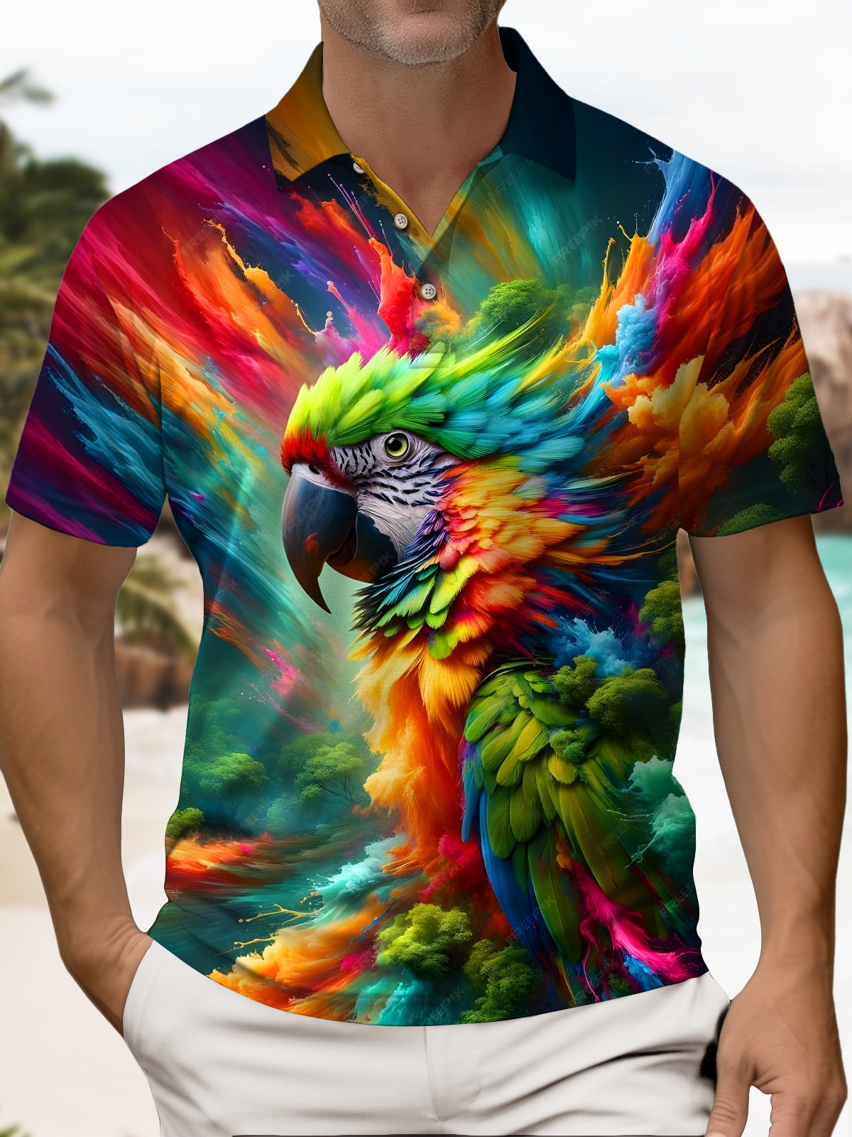 Alohadaddy® Men's Hawaiian Abstract Art Parrot Gradient Polo Shirt Short-Sleeve Big & Tall