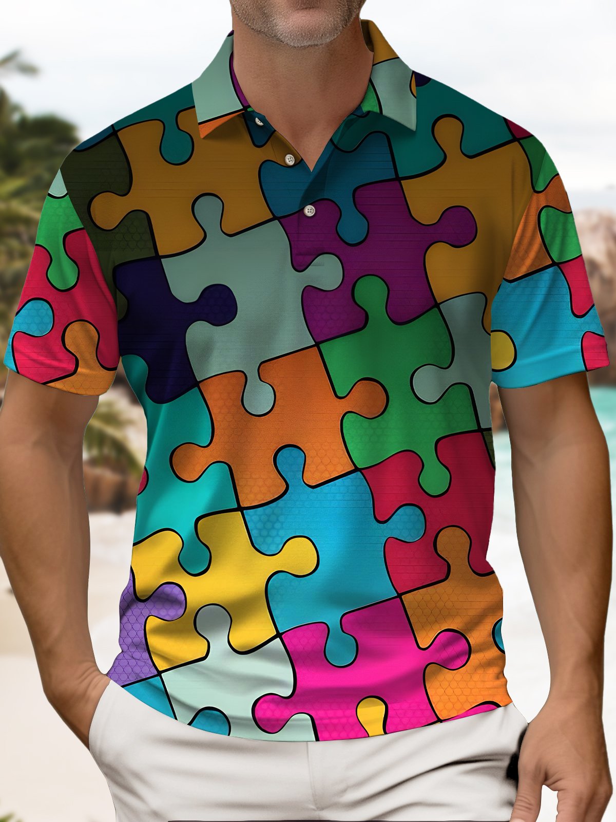 Alohadaddy® Retro Geometric Puzzle Polo Shirt