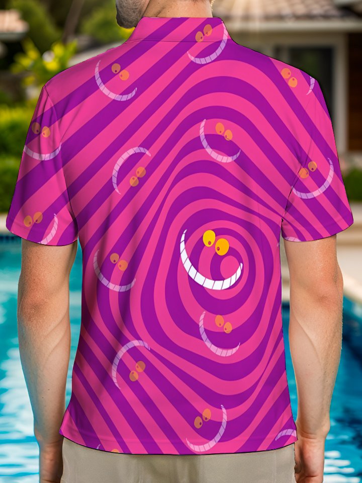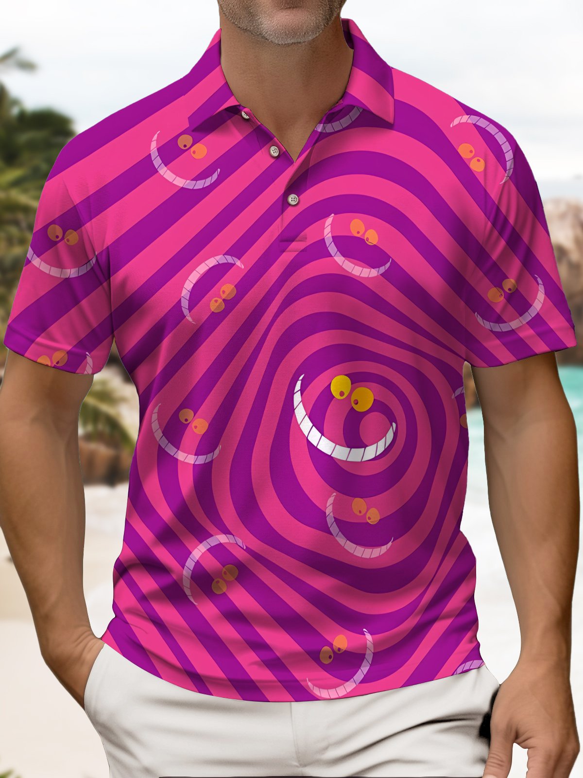 Alohadaddy® Retro Striped Cartoon Print Button Stretch Men's Short Sleeve Polo Shirt Big & Tall