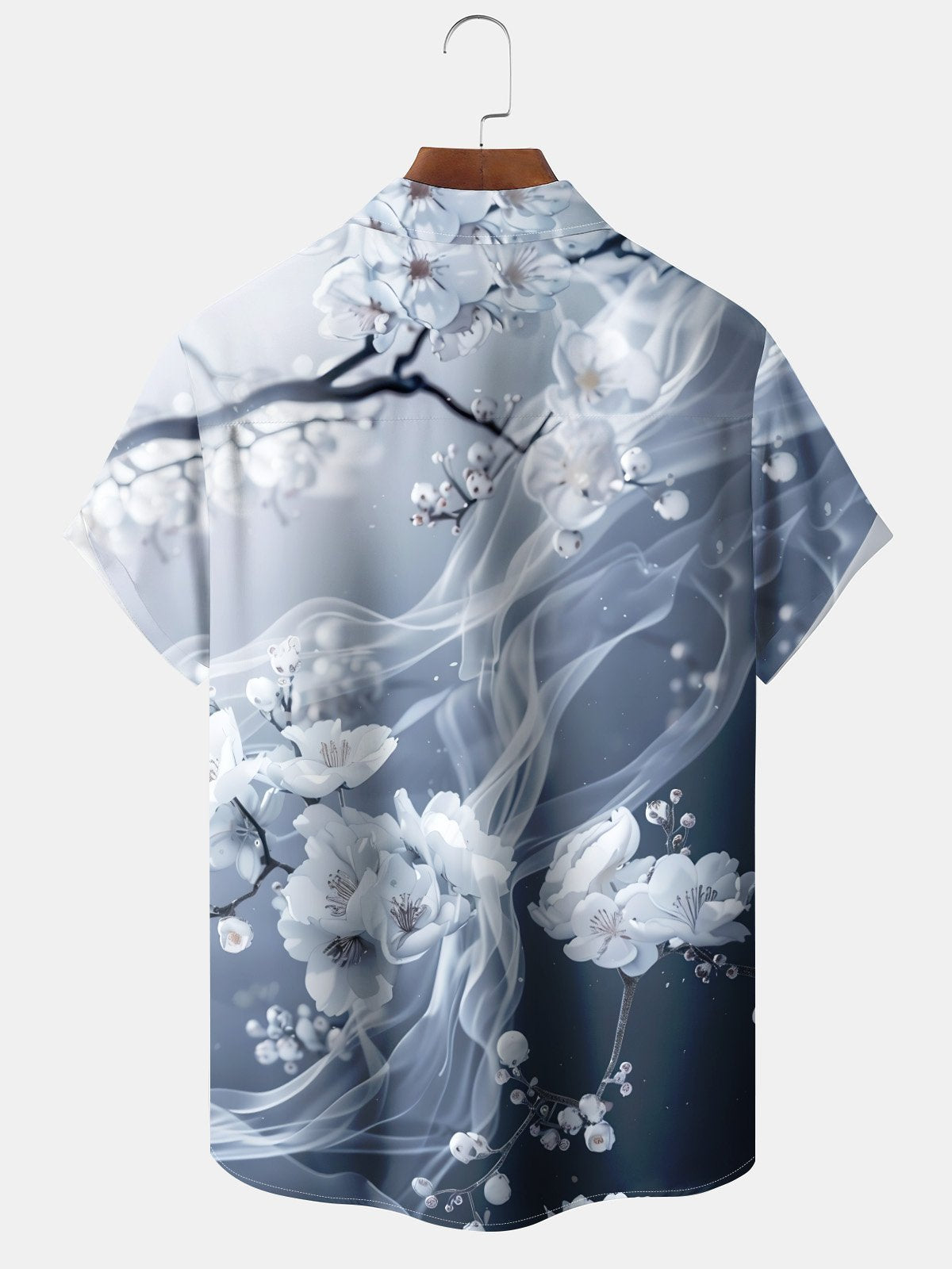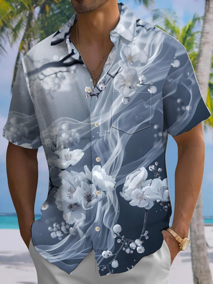 Alohadaddy® Casual Floral Art Print Moisture Wicking Chest Pocket Stretch Oversized Hawaiian Shirt