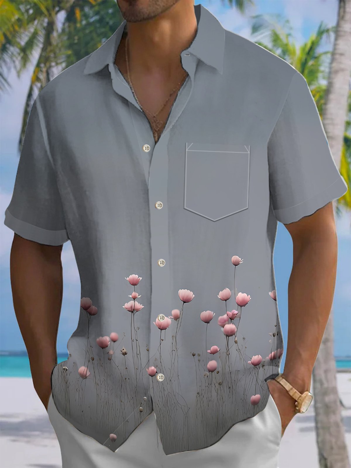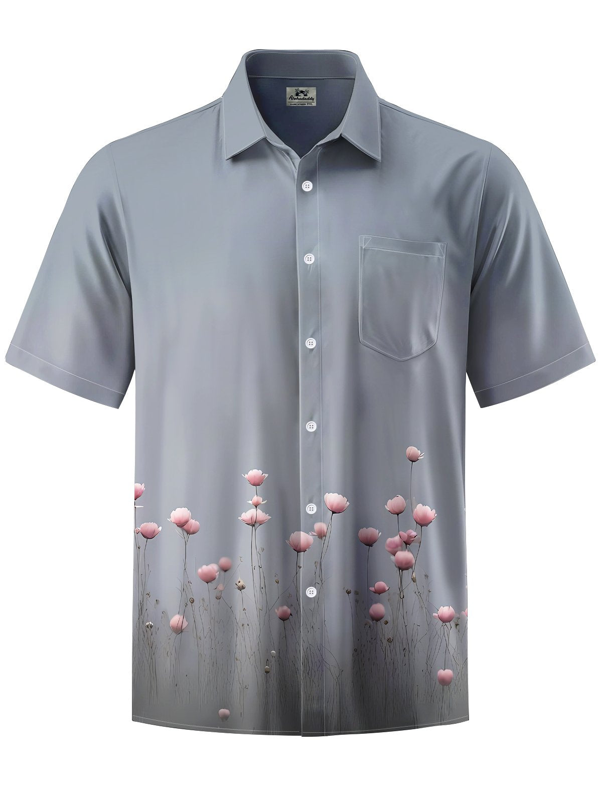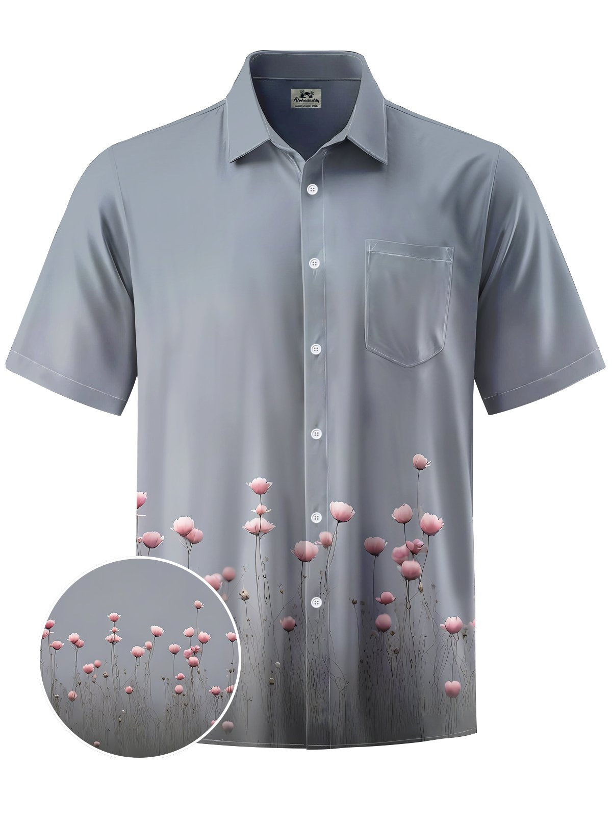 Alohadaddy® Casual Flowers Print Art Chest Pocket Men's Short Sleeve Shirt Big & Tall