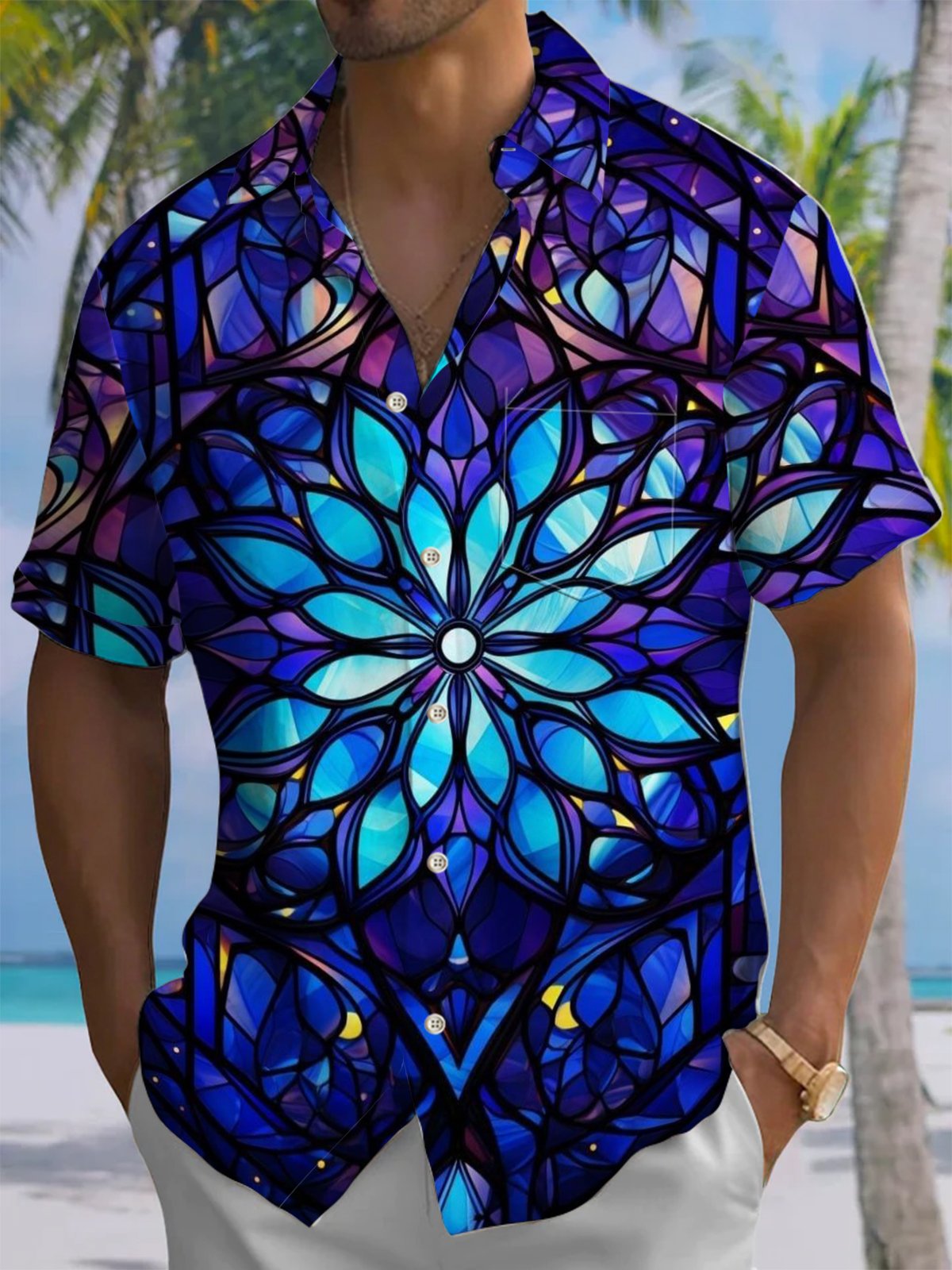 Alohadaddy® Casual Gothic Geometric Print Art Moisture Wicking Men's Short Sleeve Shirt Big & Tall