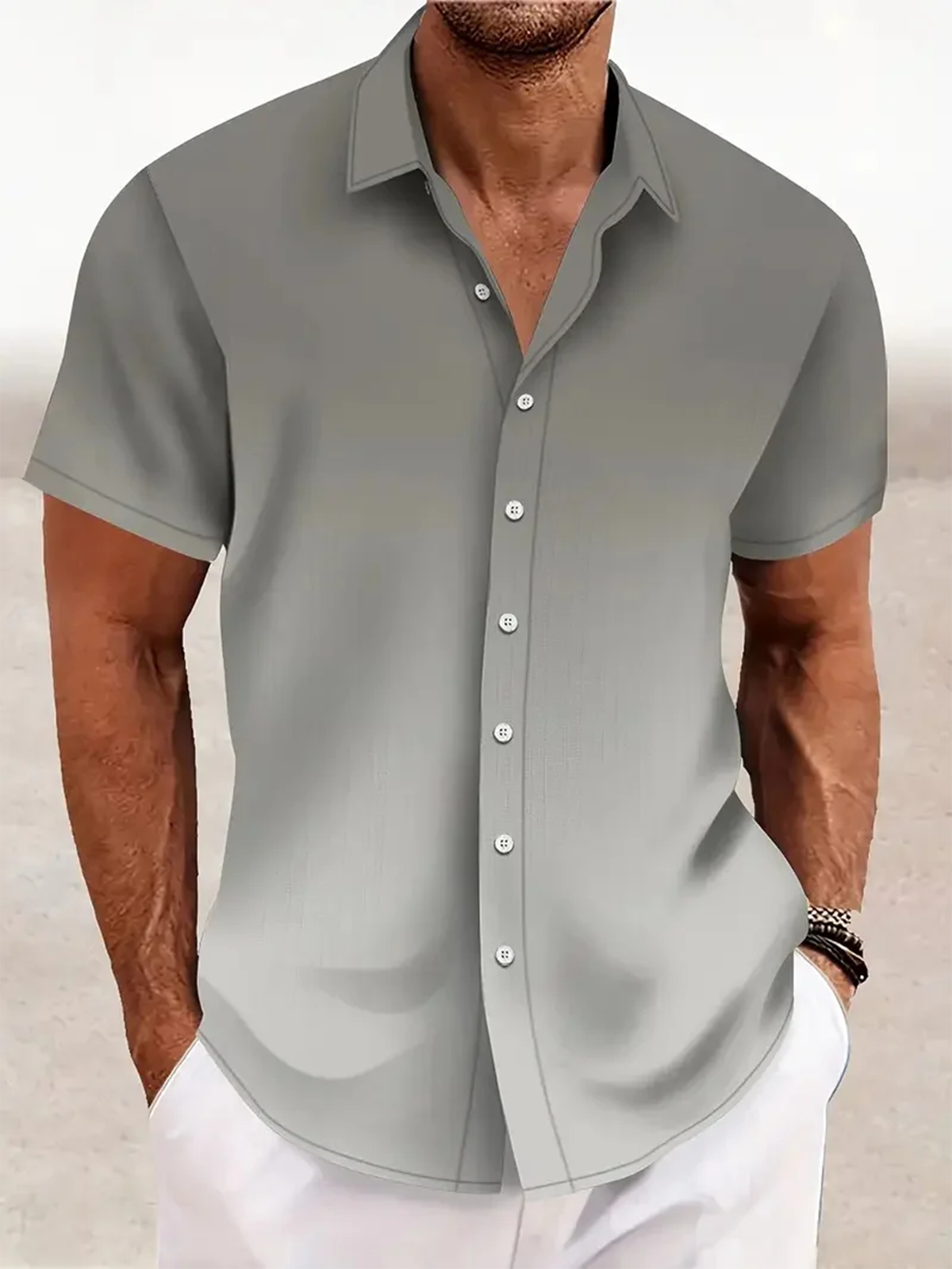 Alohadaddy® Casual Gradient Art Print Chest Pocket Men's Short Sleeve Shirt Big & Tall