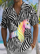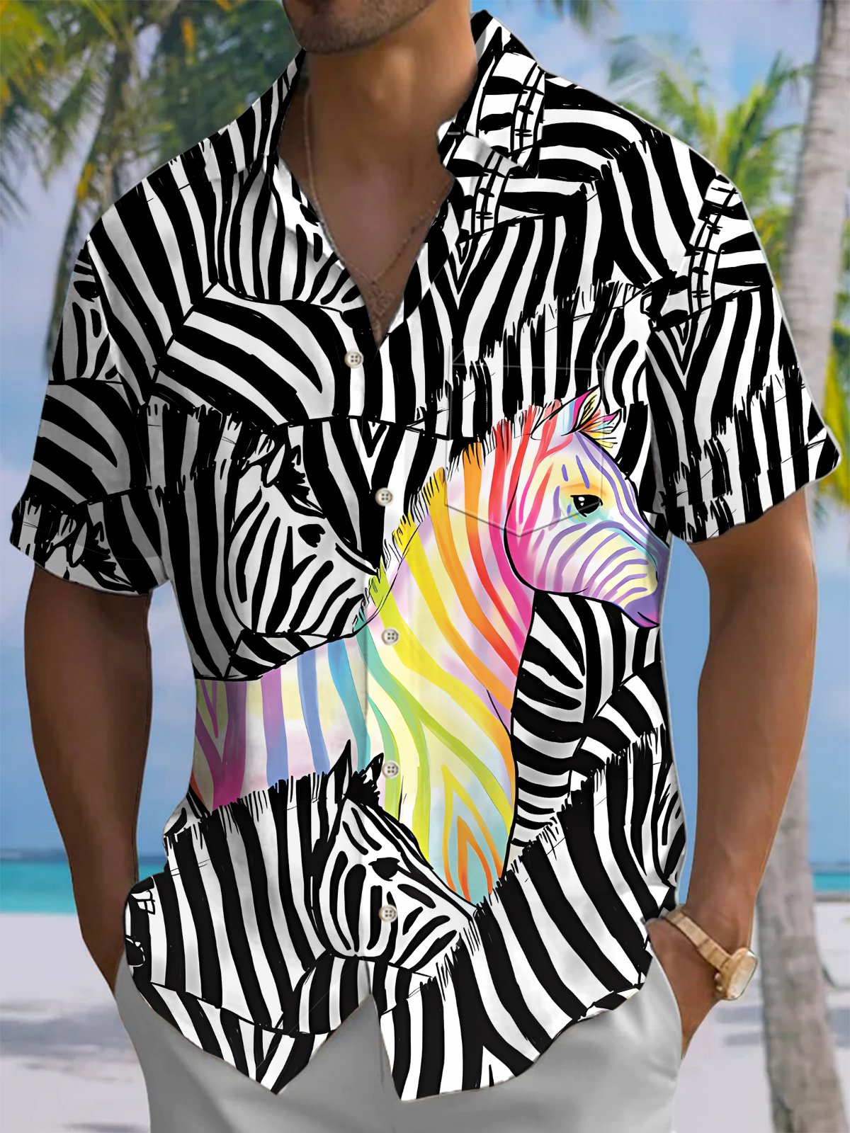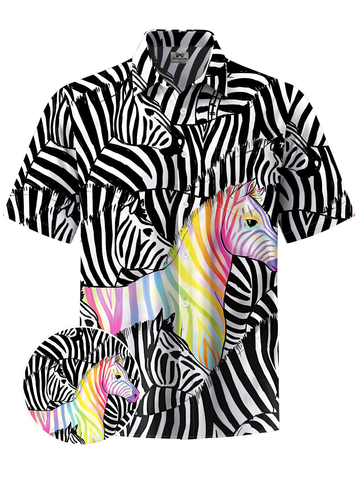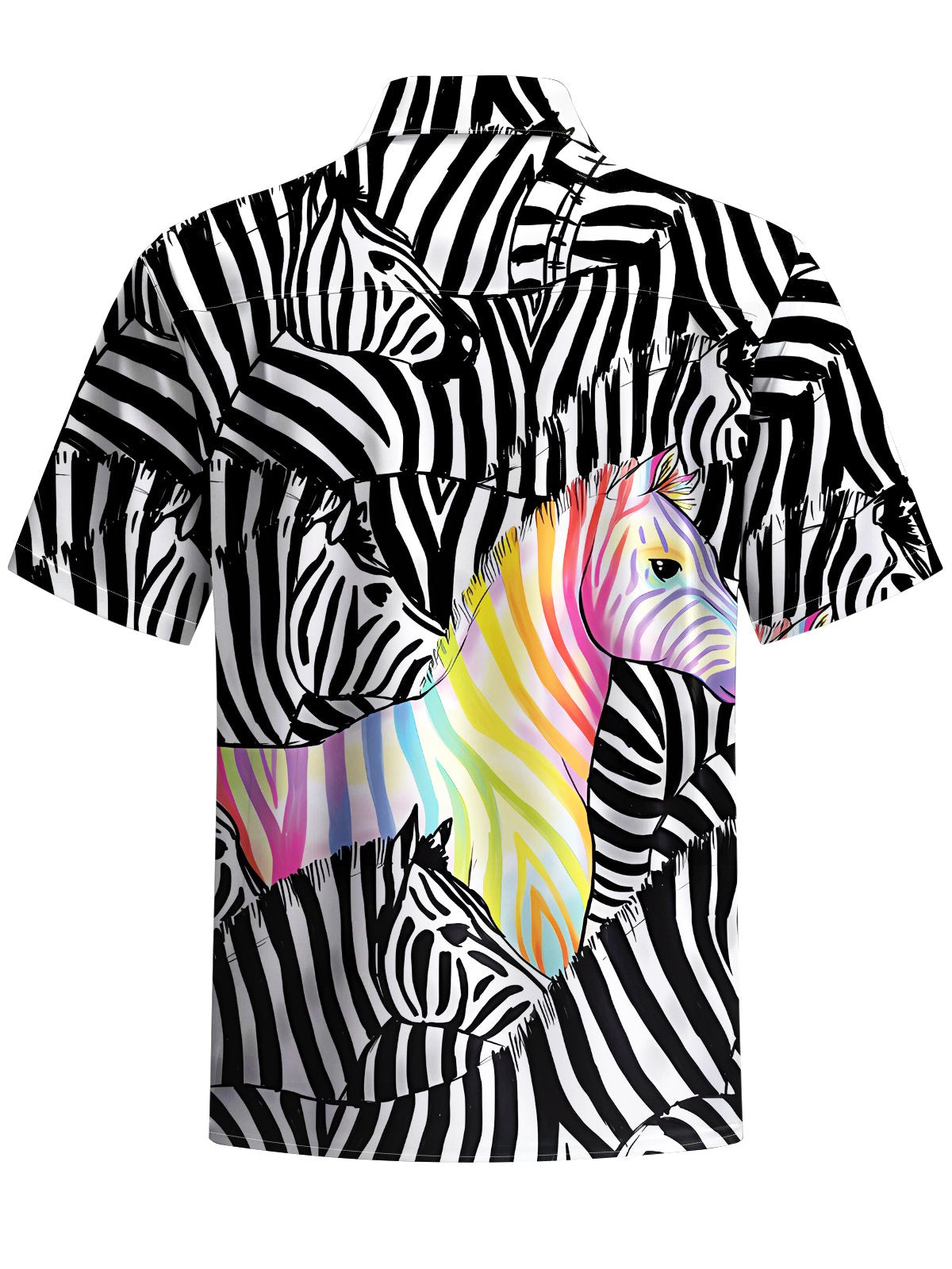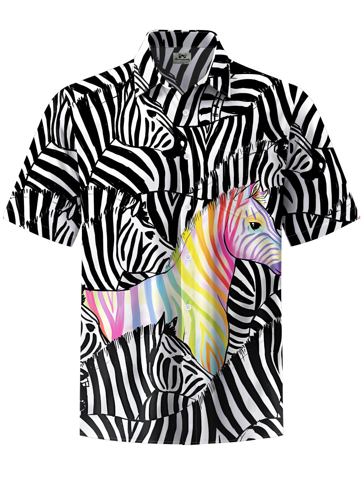 Alohadaddy® Casual Zebra Art Print Chest Pocket Mens Short Sleeve Shirt Big & Tall