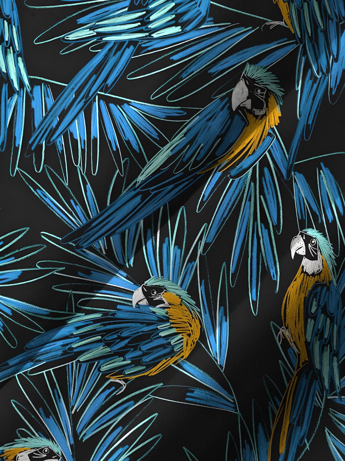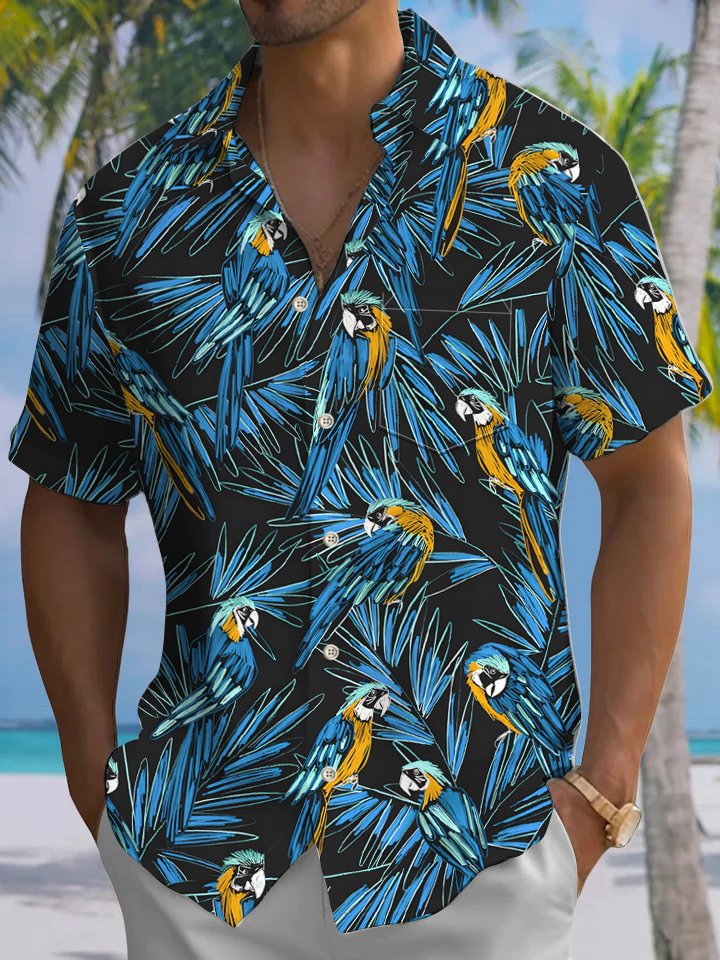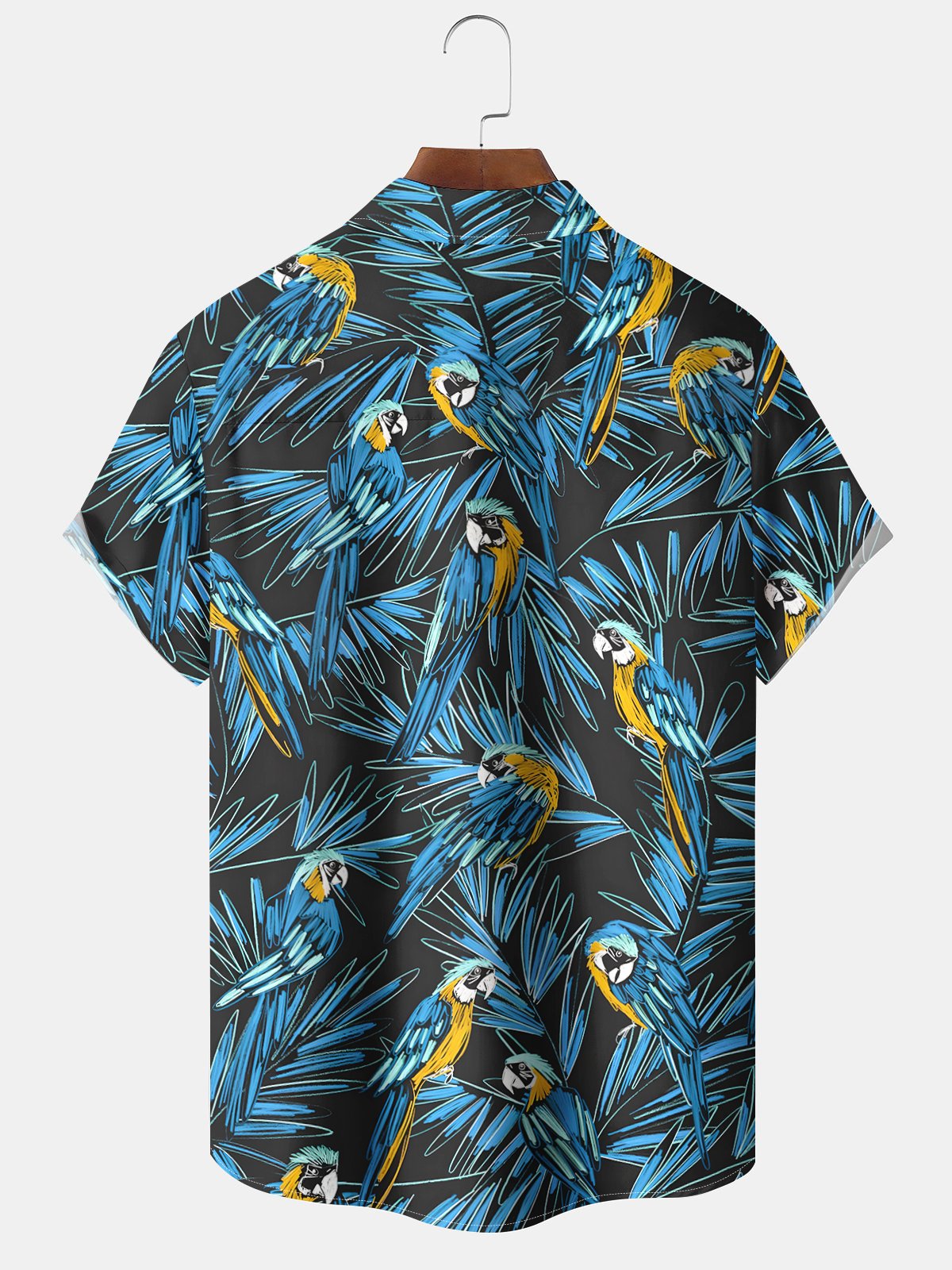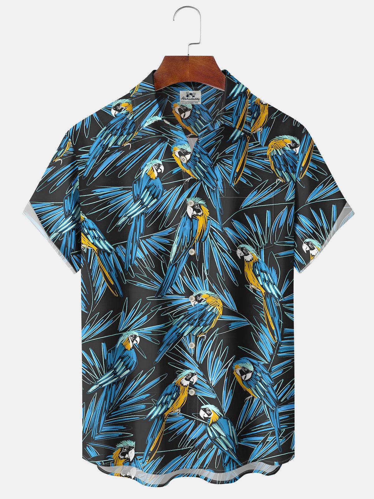 Alohadaddy® Parrot Art Print Chest Pocket Cardigan Large Size Long Hawaiian Short Sleeve Shirt