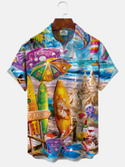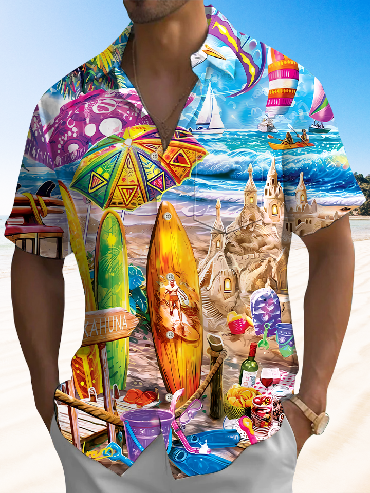 Alohadaddy Beach Coconut Tree Vacation Button Pocket Casual Short Sleeve Shirt