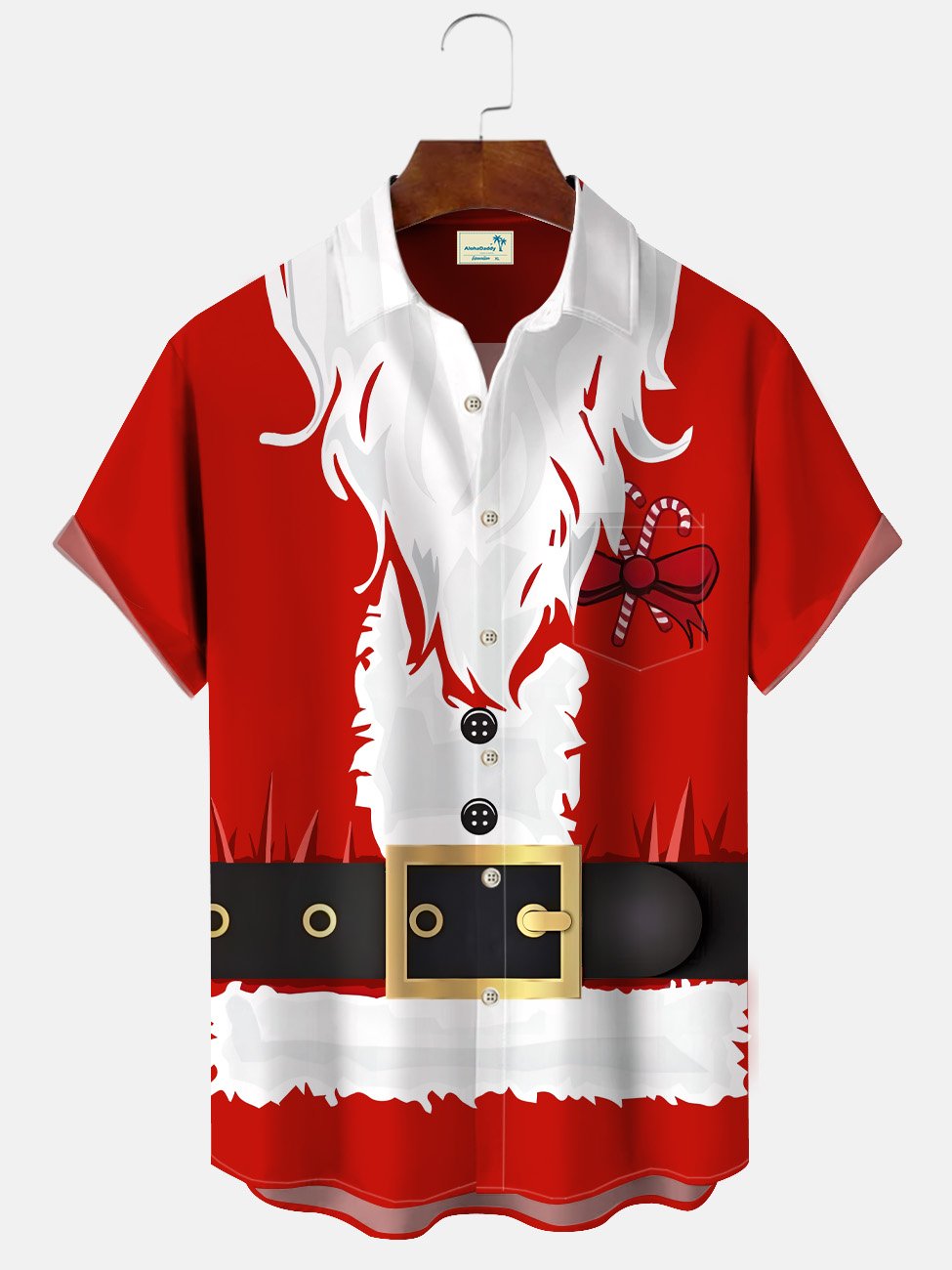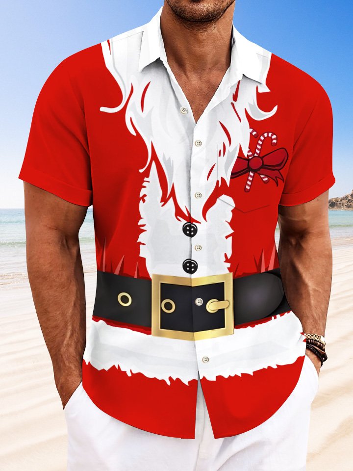 Camisa informal de manga corta con bolsillos y botones de Papá Noel navideño de Alohadaddy