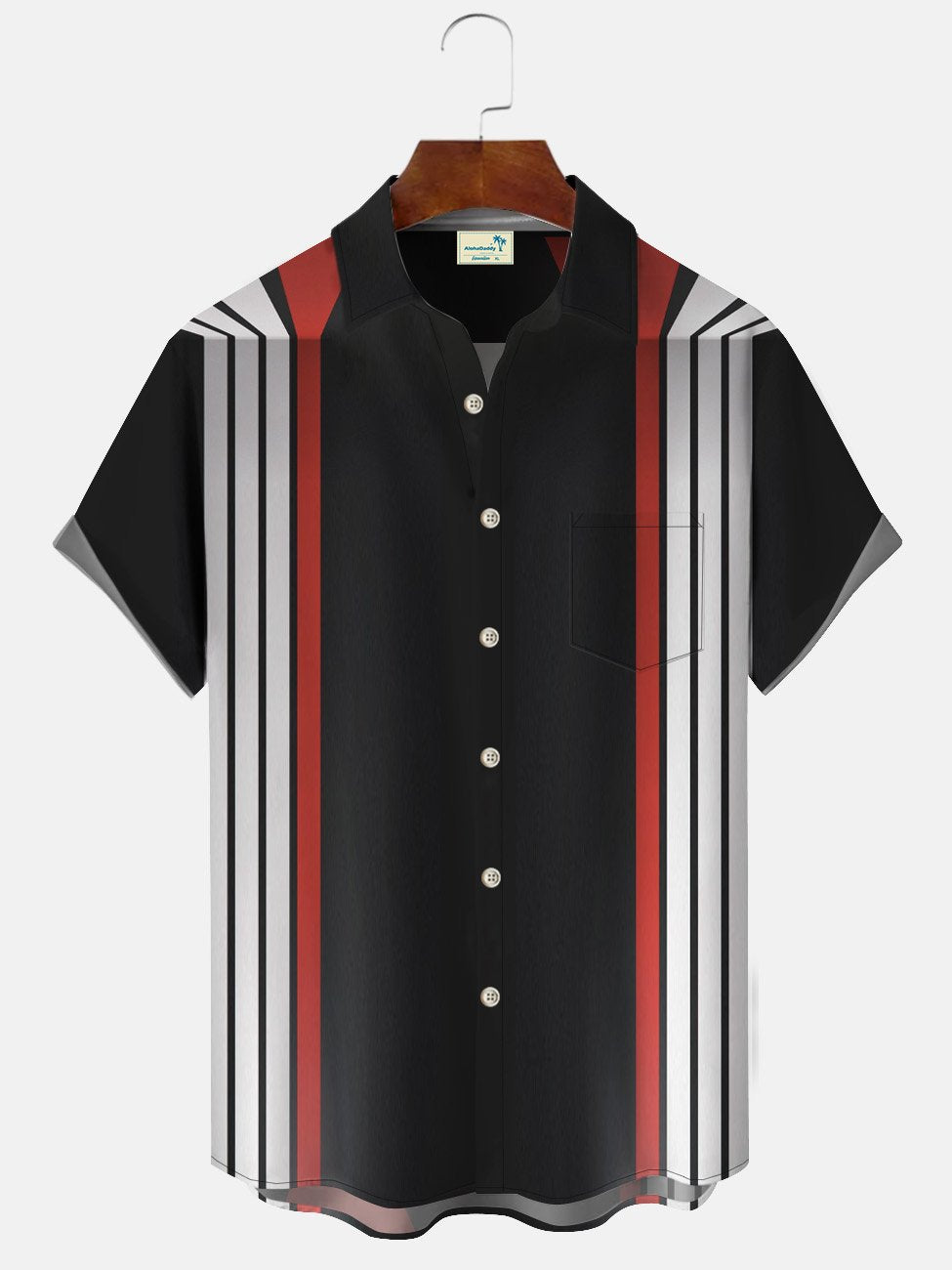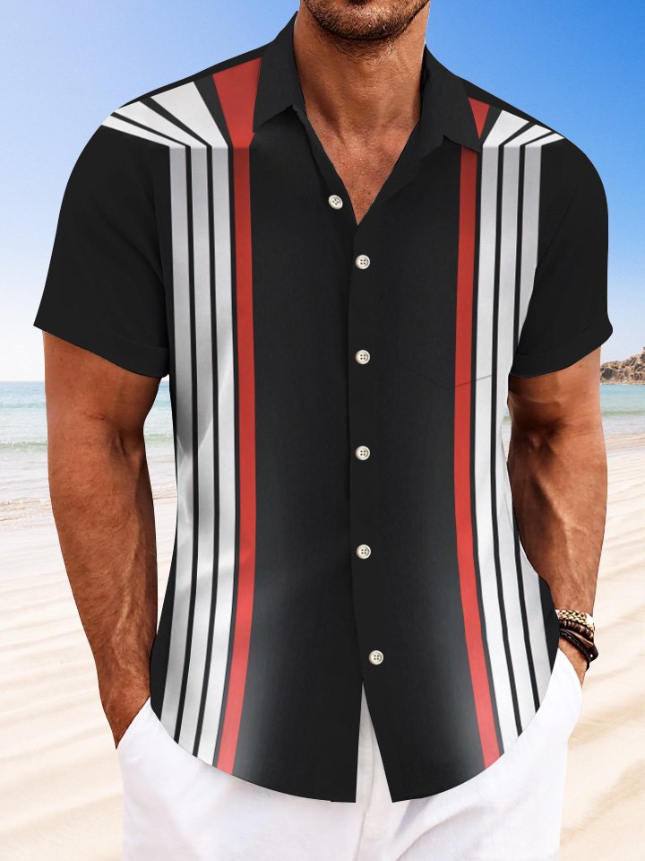 Camisa informal de manga corta para hombre, estilo años 50, con rayas geométricas, bolsillos con botones, estilo bolos