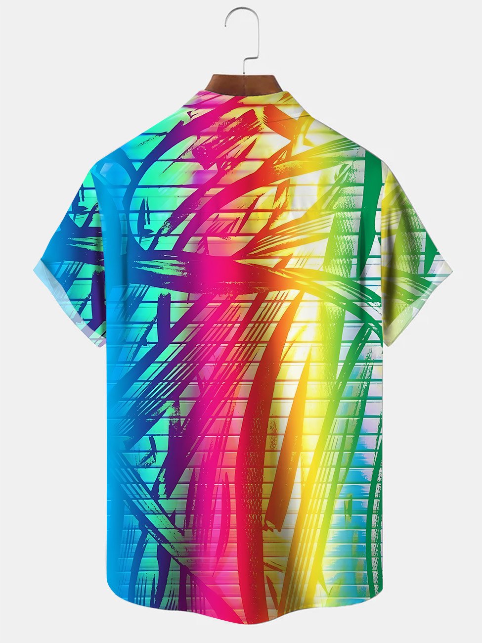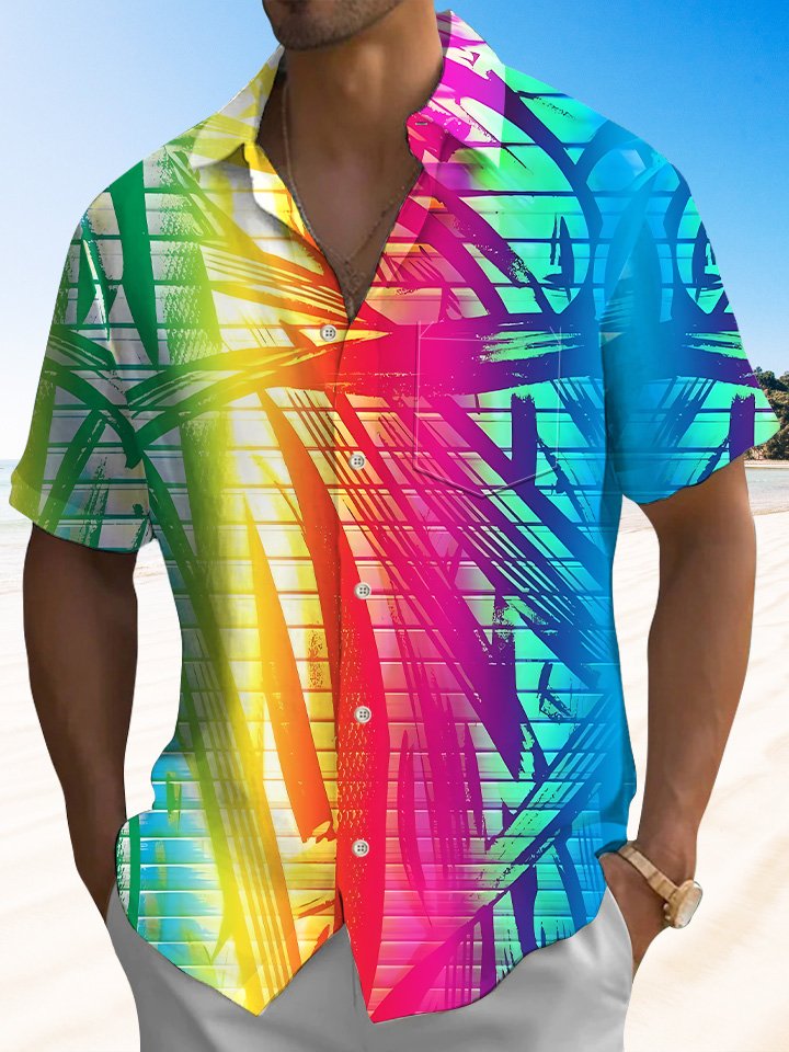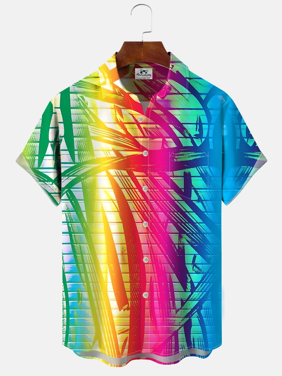 Alohadaddy Gradient Plants Leaves Buttons Pockets Casual Short Sleeve Shirt