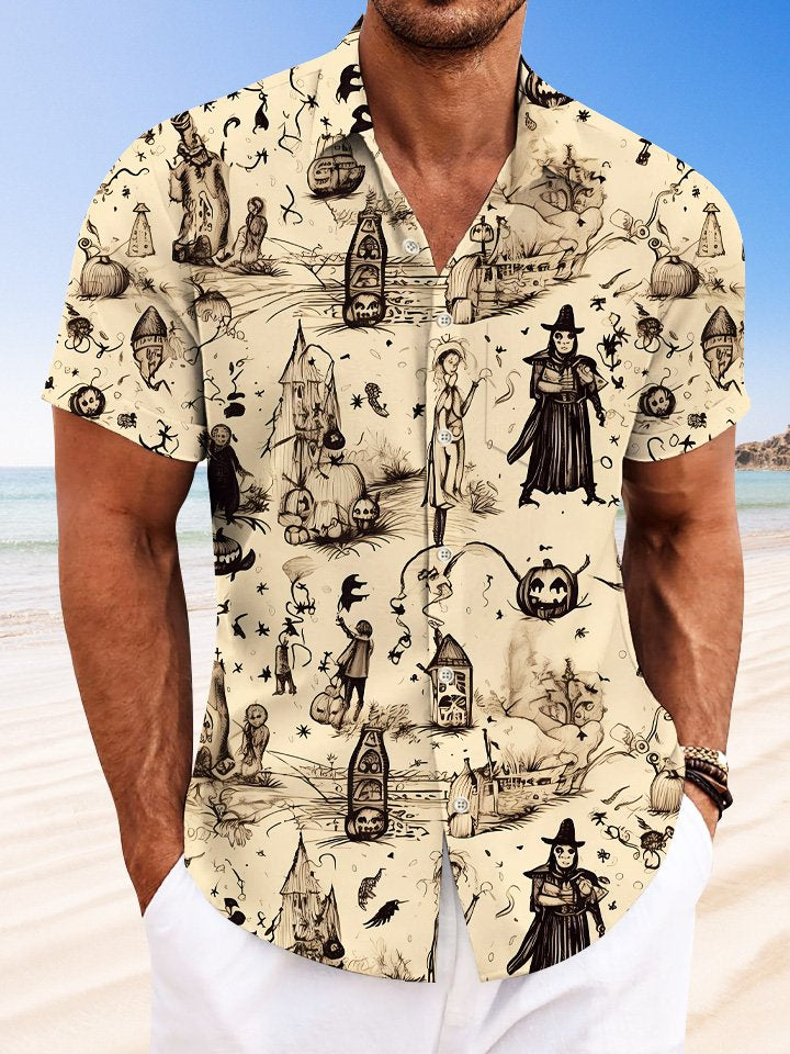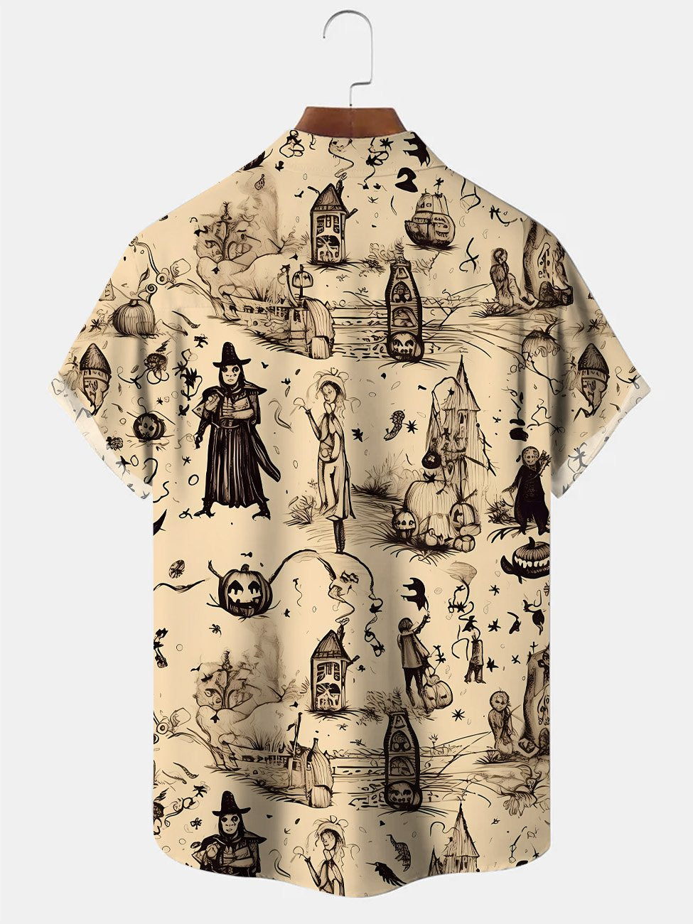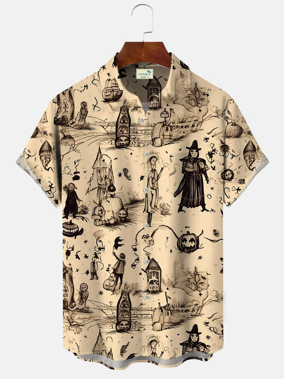Camisa informal de manga corta con botones y bolsillo con diseño de fantasma de Halloween de Alohadaddy