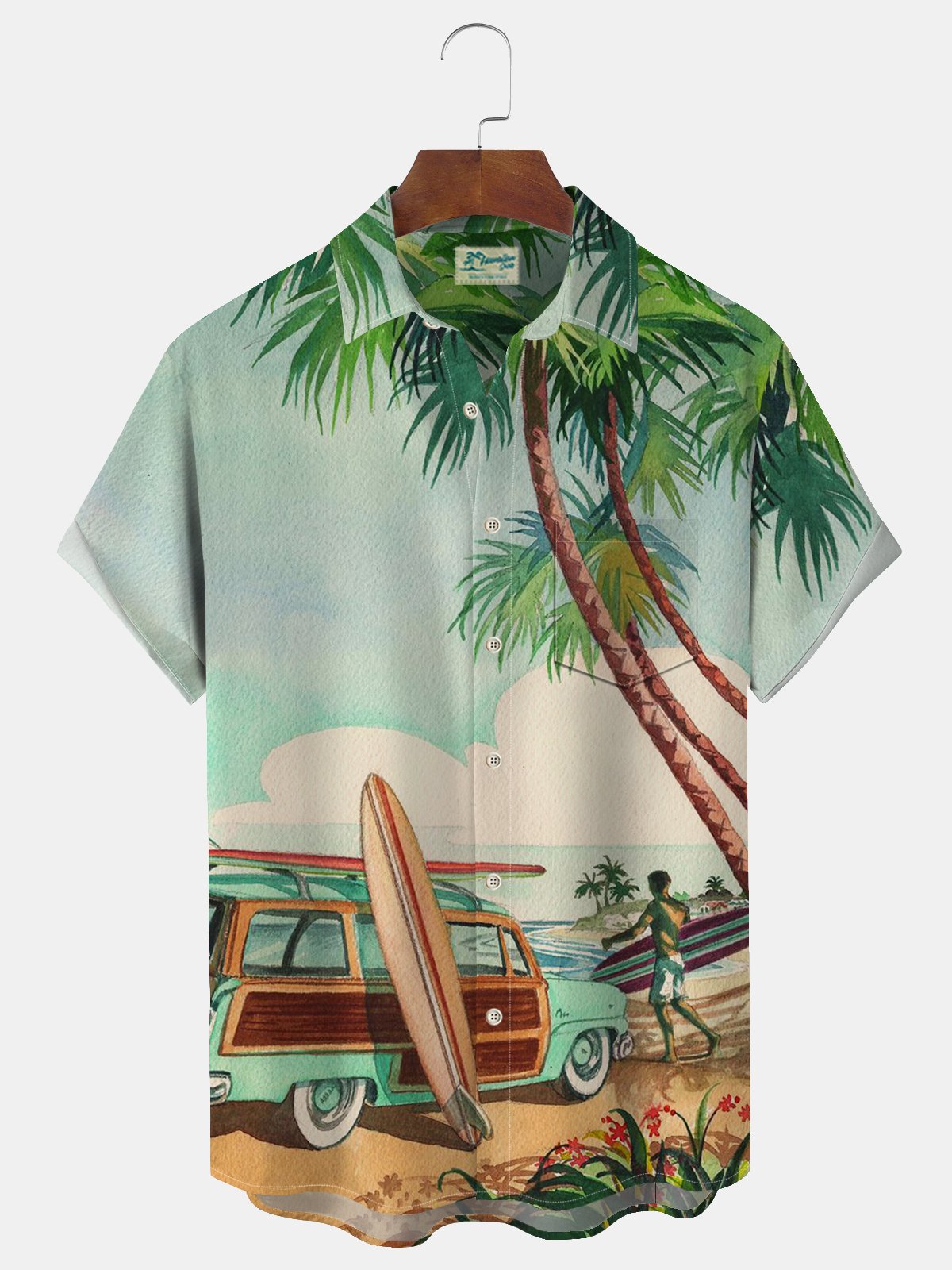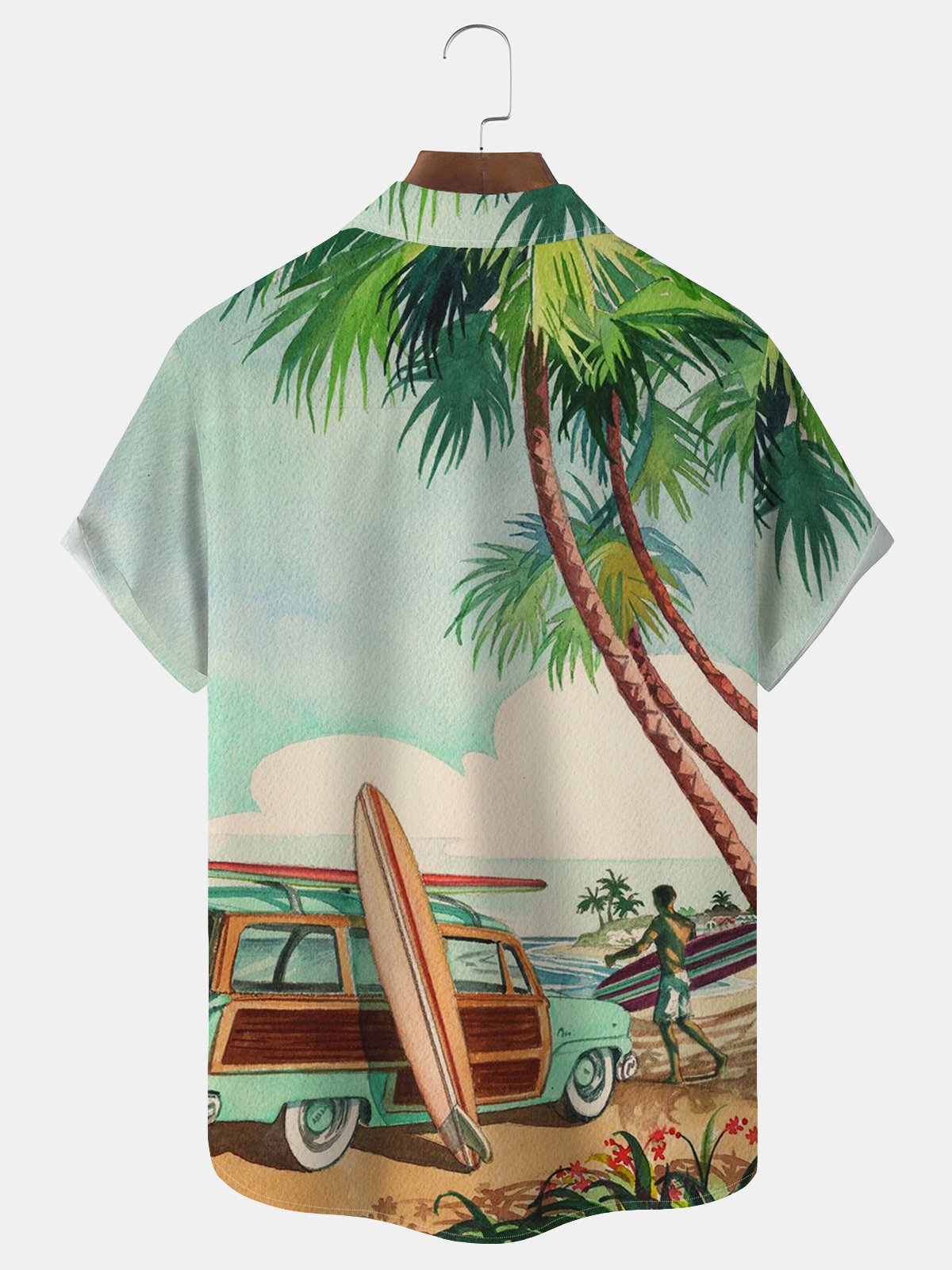 Camisa con bolsillos abotonados para hombre con estampado de autos botánicos hawaianos de Alohadaddy