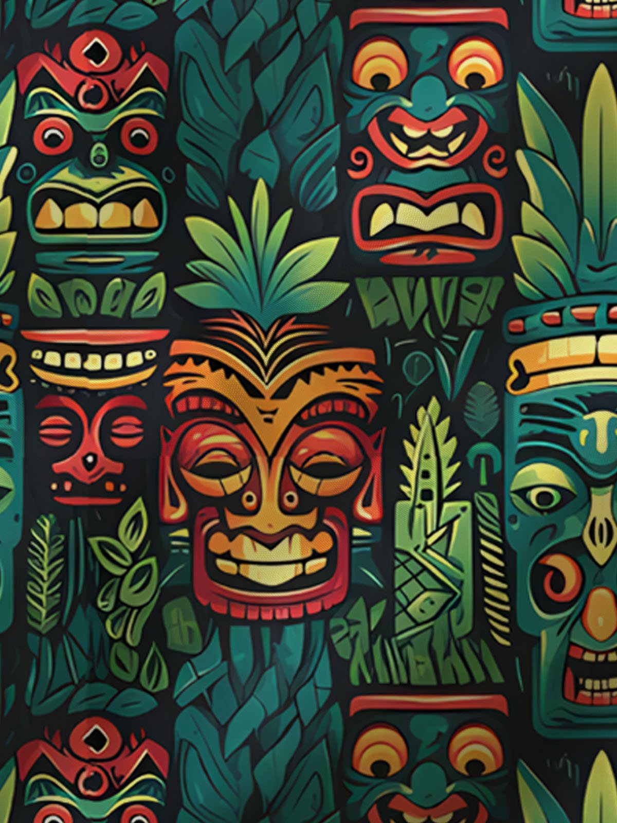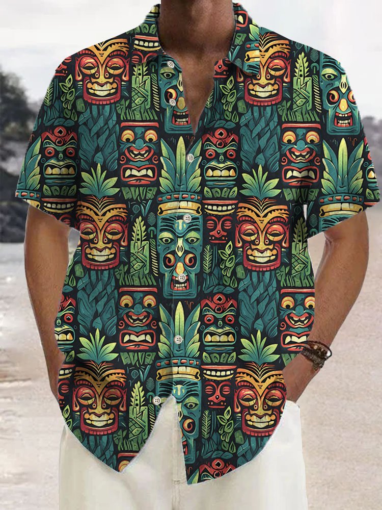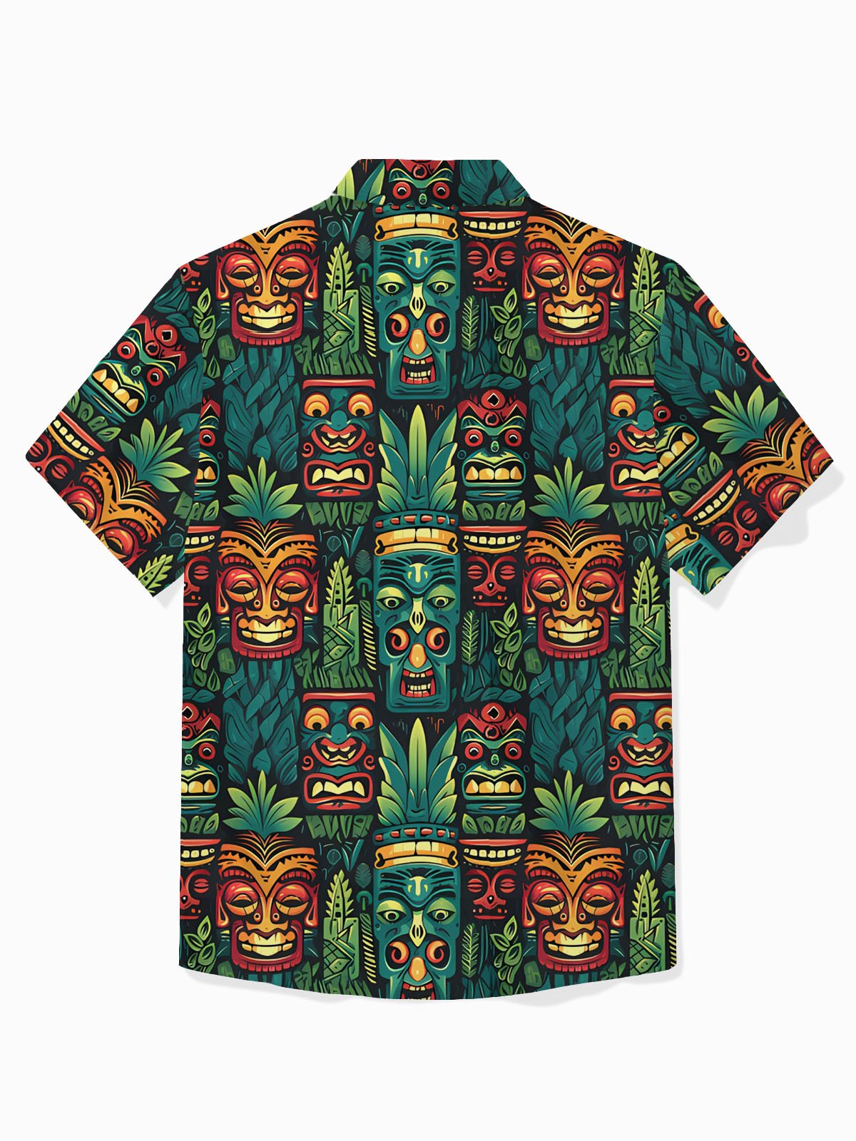 Camisa de manga corta con bolsillo abotonado para hombre con estampado botánico Tiki hawaiano de Alohadaddy