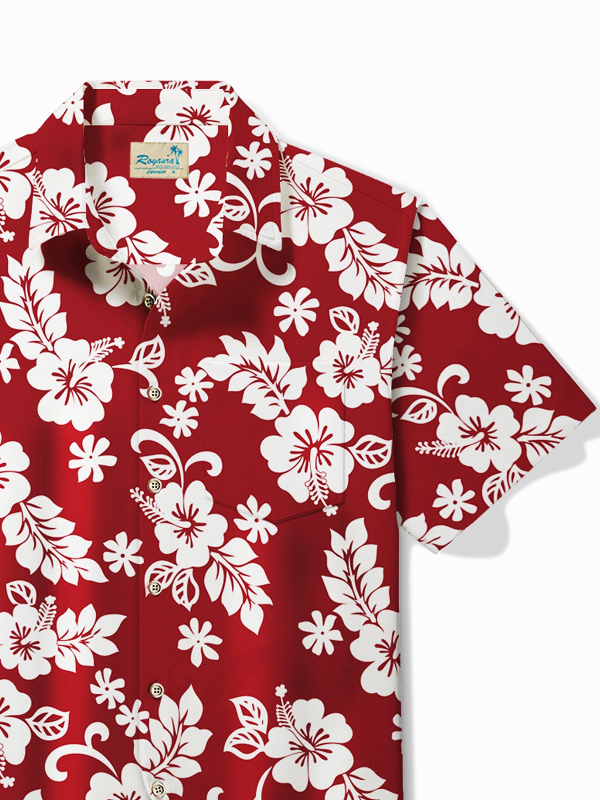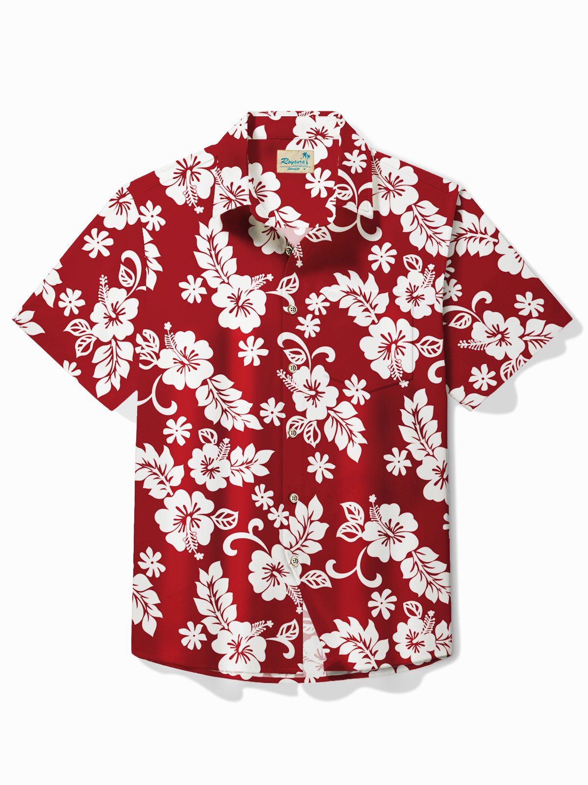 Camisa de campamento de secado rápido con bolsillo y diseño de plumeria hawaiana para hombre de Alohadaddy Holiday Beach, color rojo, talla grande