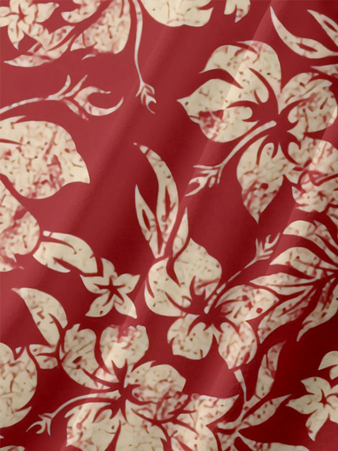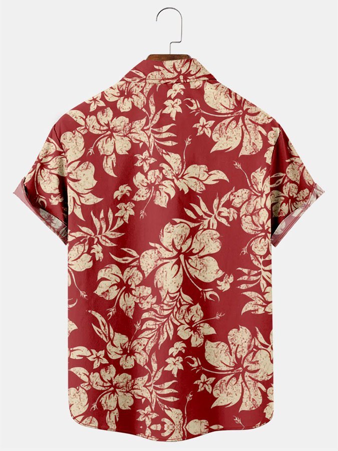 Camisa de manga corta con solapa y estampado de plantas, flores y hojas, estilo hawaiano, serie Holiday Alohadaddy