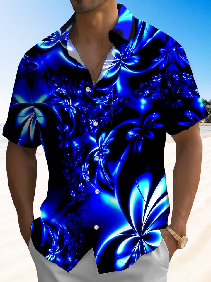 Alohadaddy Leaf Plant Button Pocket Casual Short Sleeve Shirt