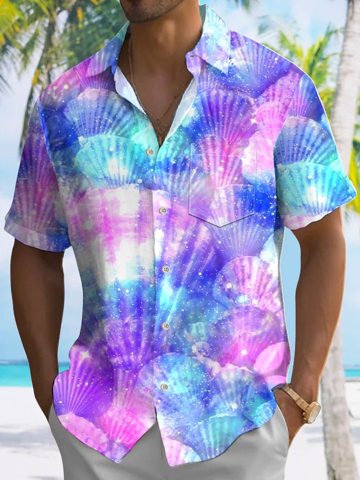 Alohadaddy Ocean Shell Button Pocket Casual Short Sleeve Shirt