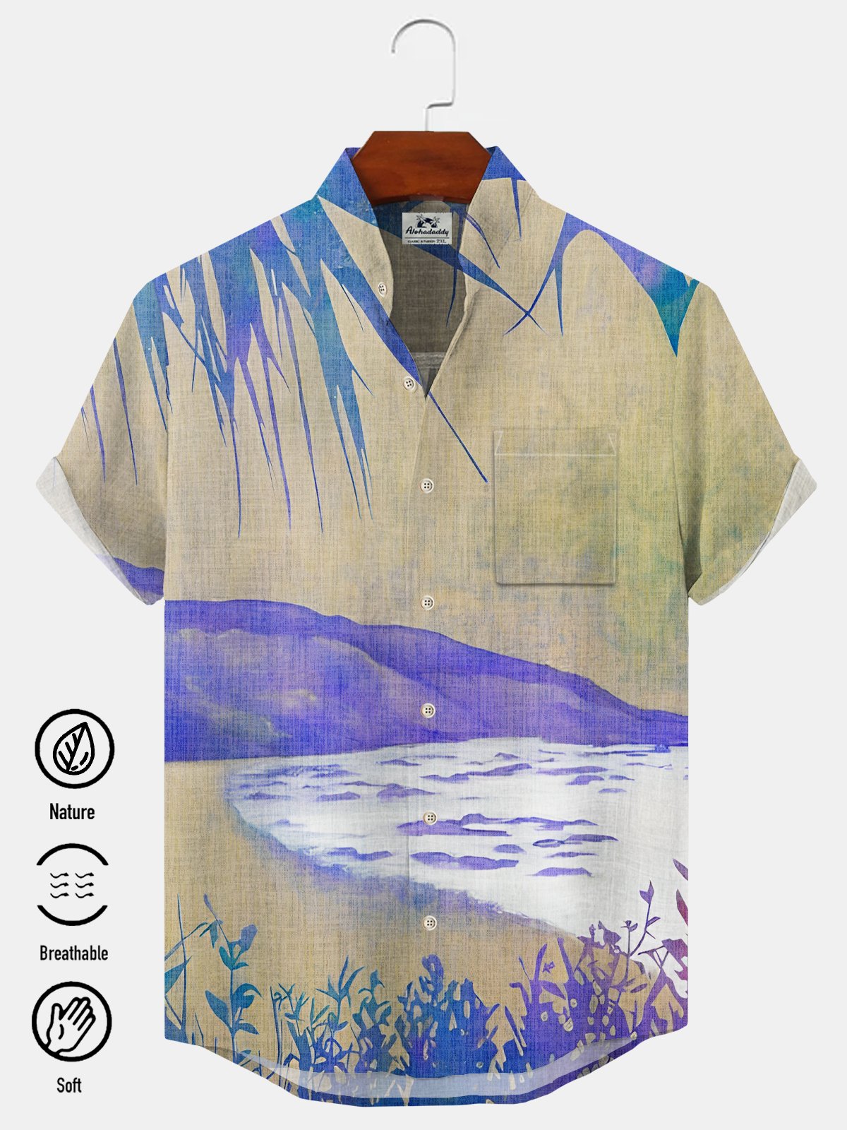 Alohadaddy Plant Coconut Tree Button Pocket Casual Short Sleeve Stand Collar Shirt