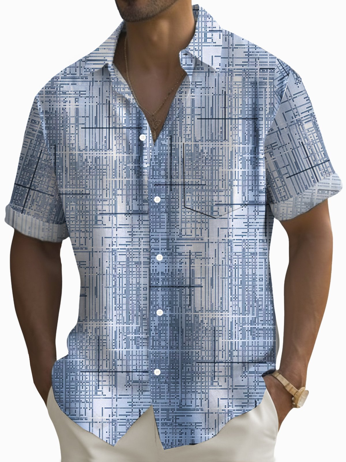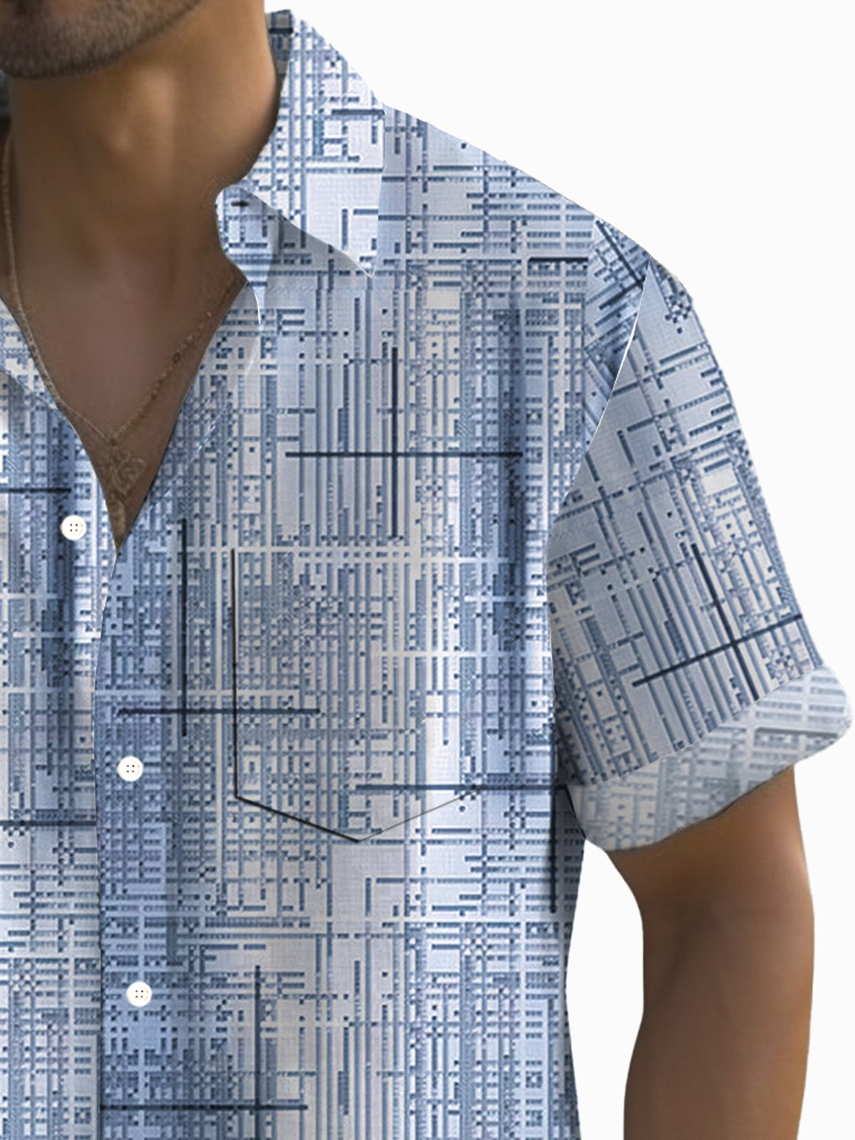Camisa de manga corta con bolsillo abotonado y estampado digital 3D con textura geométrica retro para hombre de Alohadaddy, tallas grandes y altas
