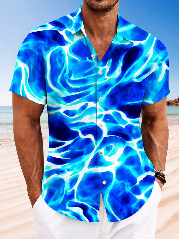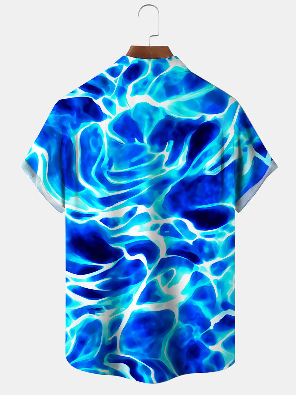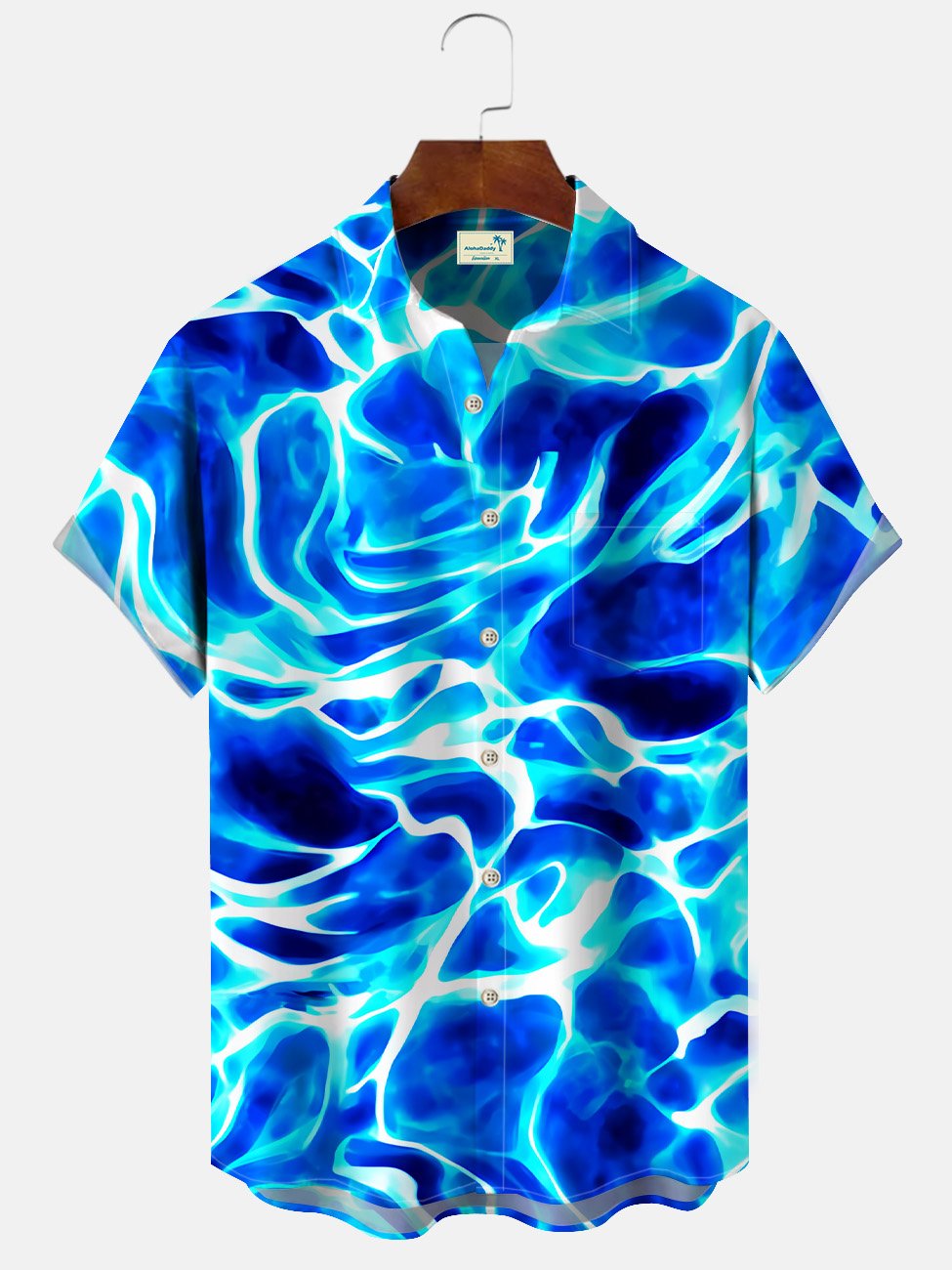 Camisa informal de manga corta de poliéster para hombre con botones y bolsillo con ondas de agua de verano Alohadaddy