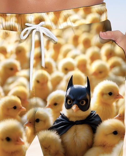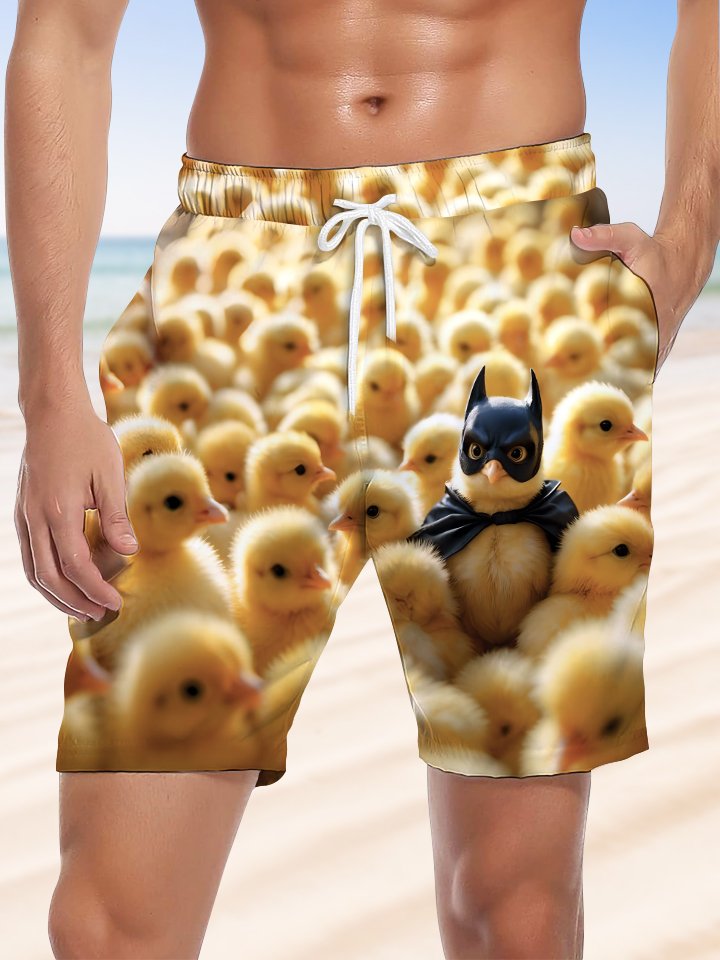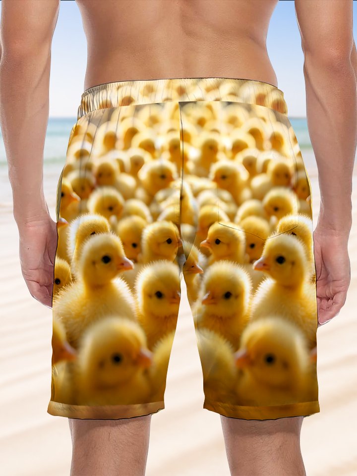 Alohadaddy Hawaiian Casual Yellow Chicken Print Art Elastic Large Size Beach Shorts