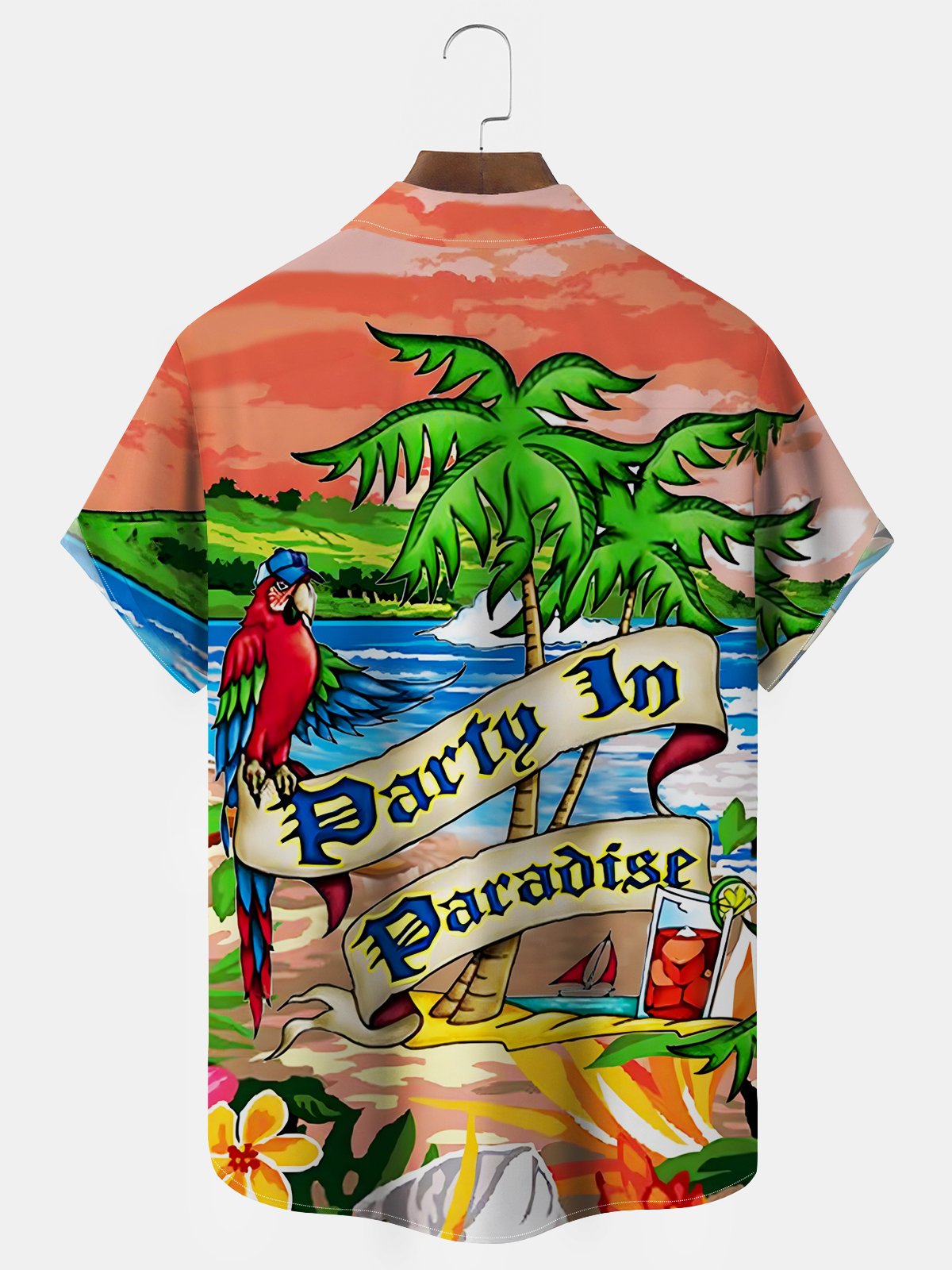 Camisa con bolsillos abotonados para hombre con estampado de loro hawaiano de Alohadaddy