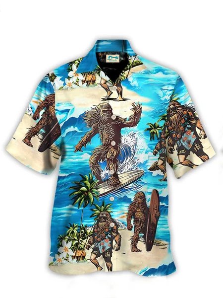 Camisa de manga corta elástica de gran tamaño con estampado de mono surfero para hombre de Alohadaddy