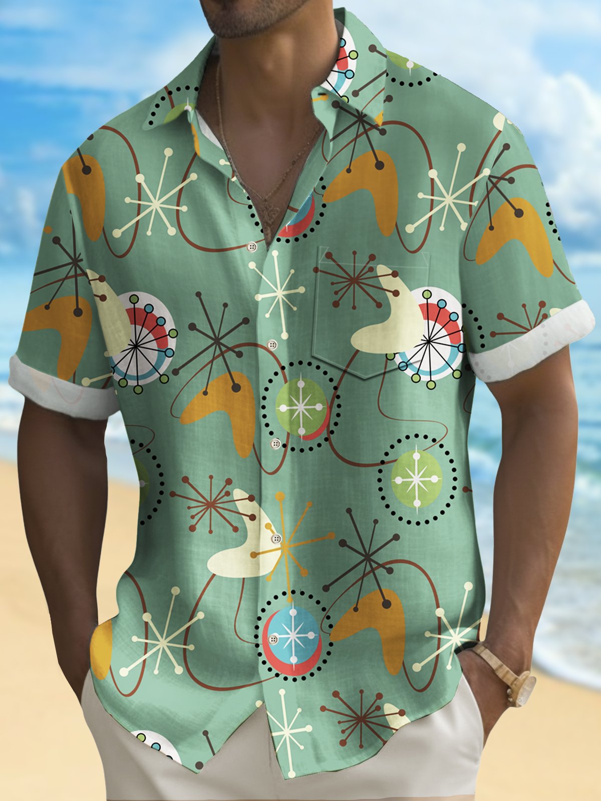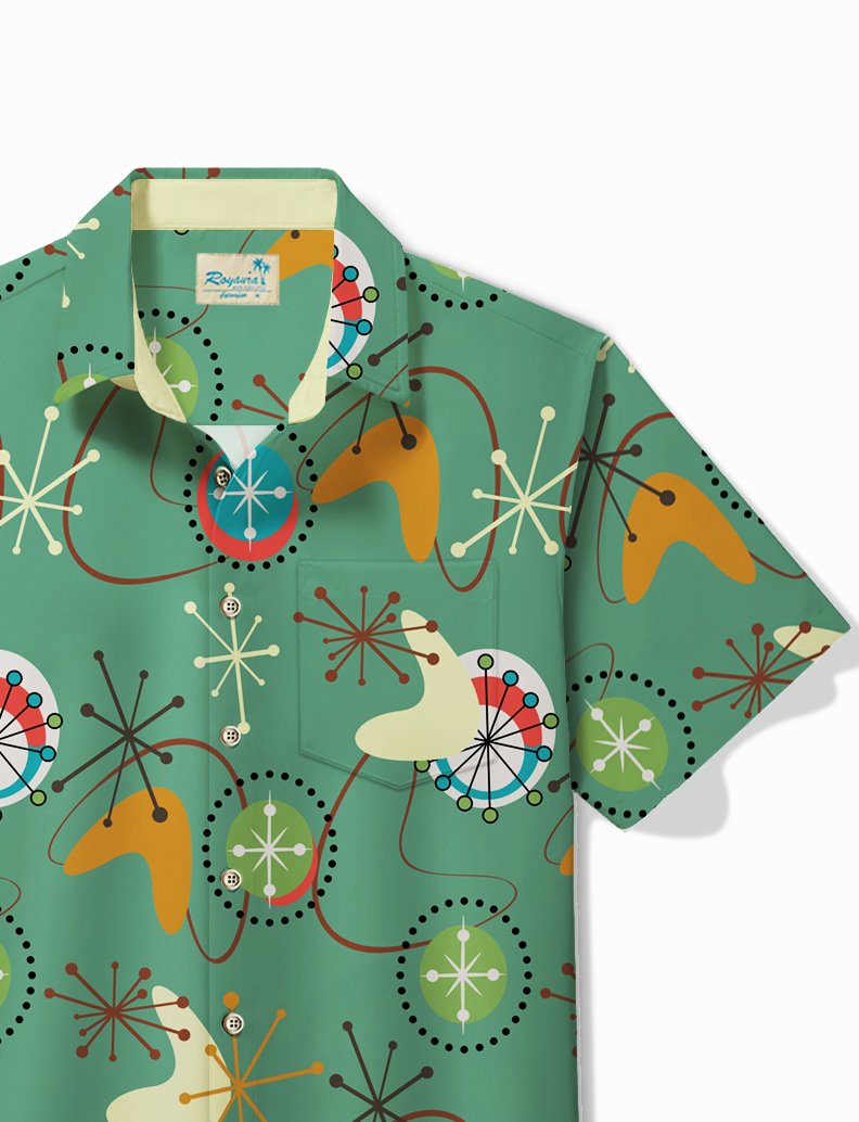 Camisa hawaiana elástica de gran tamaño para hombre con diseño geométrico retro de mediados de siglo de Alohadaddy