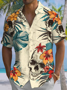 Alohadaddy® Casual Skull Holiday Art Print Chest Pocket Stretch Men's Short Sleeve Shirt Big & Tall